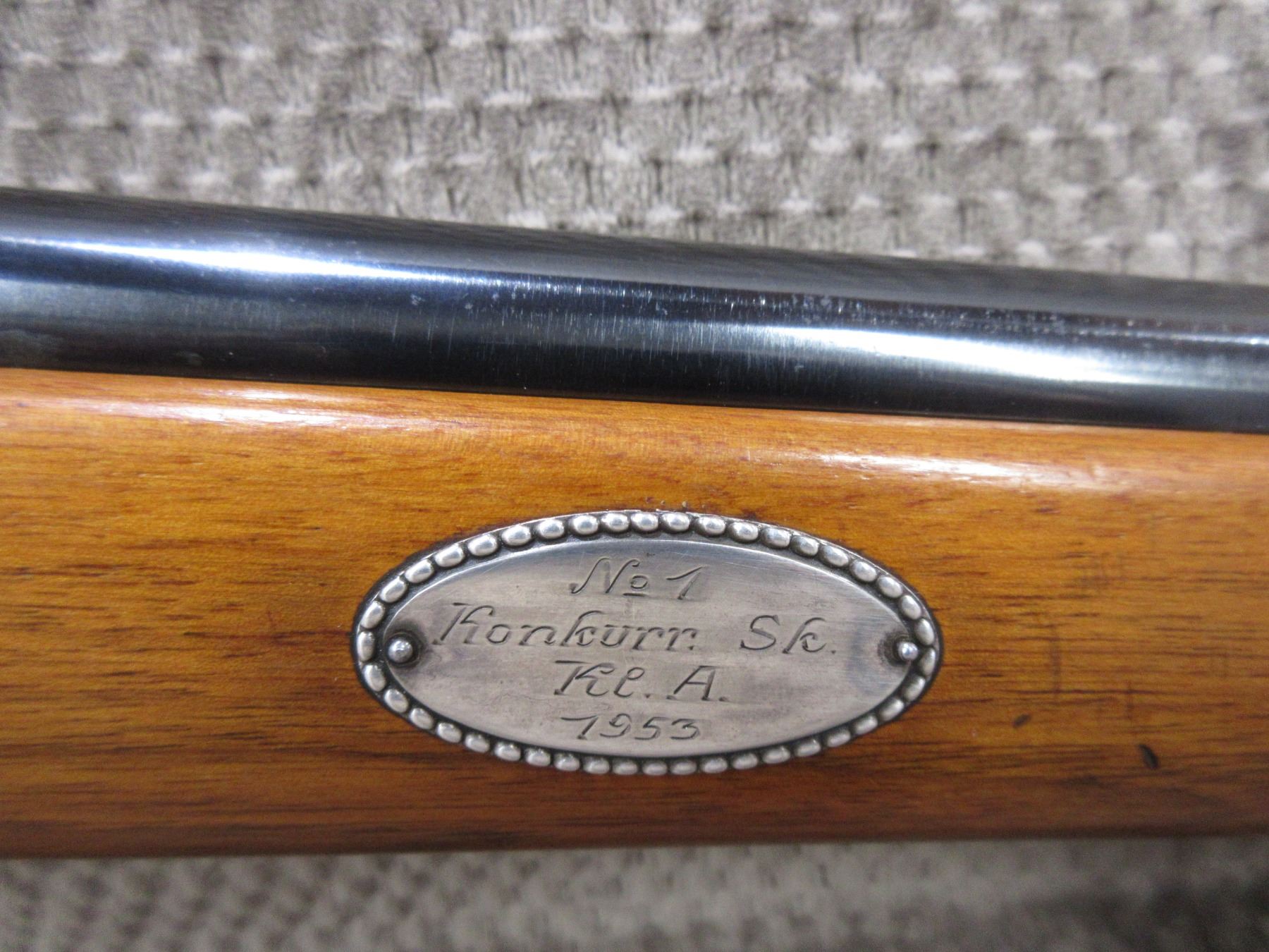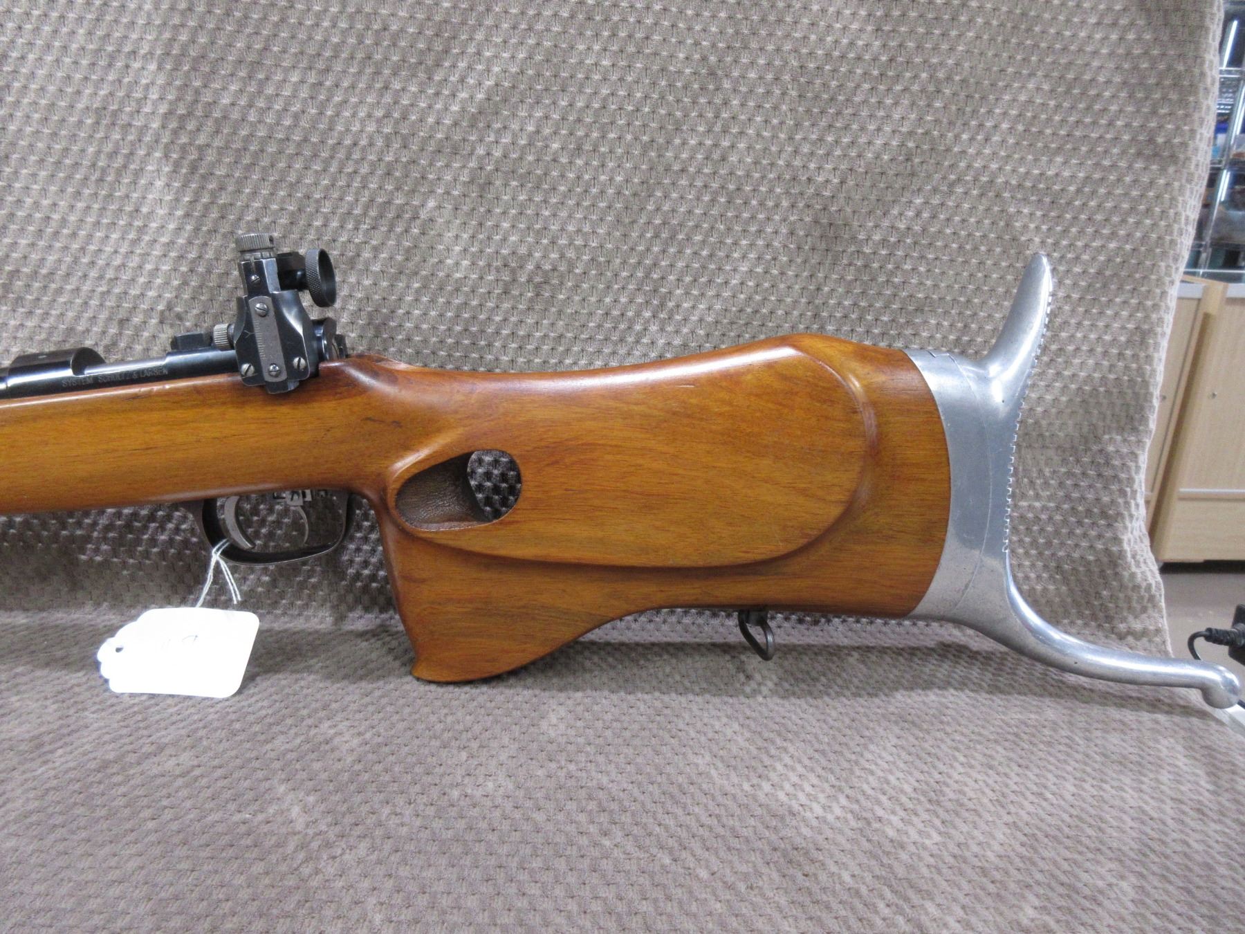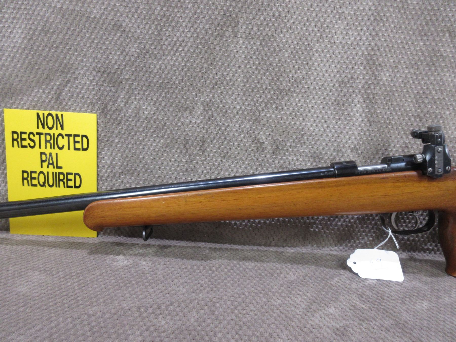 Non-Restricted - Schultz & Larsen Model M61 in 22 LR - This single shot target rifle appears to be in good to very good working order. Heavy barrel is 28", bluing is good to very good with some wear on muzzle, rifling is good to very good, has both peep sights, stock good with usual marks, adjustable butt plate good, Ser # 1647