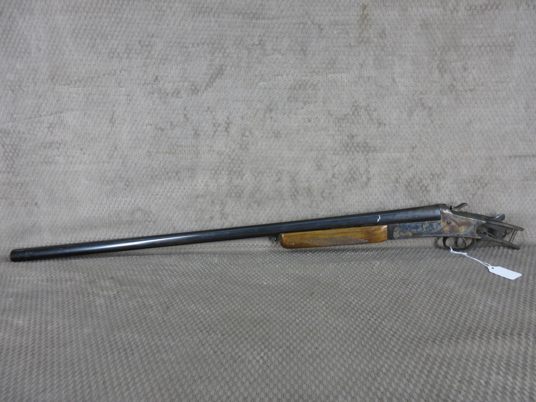 Non-Restricted - Harrington & Richardson in 12 Gauge - This single shot, break action, shotgun appears to be in working order but is missing stock. Barrel is 29 1/2" may have been cut, bore is shiny, front bead, bluing is fair, forearm is good.