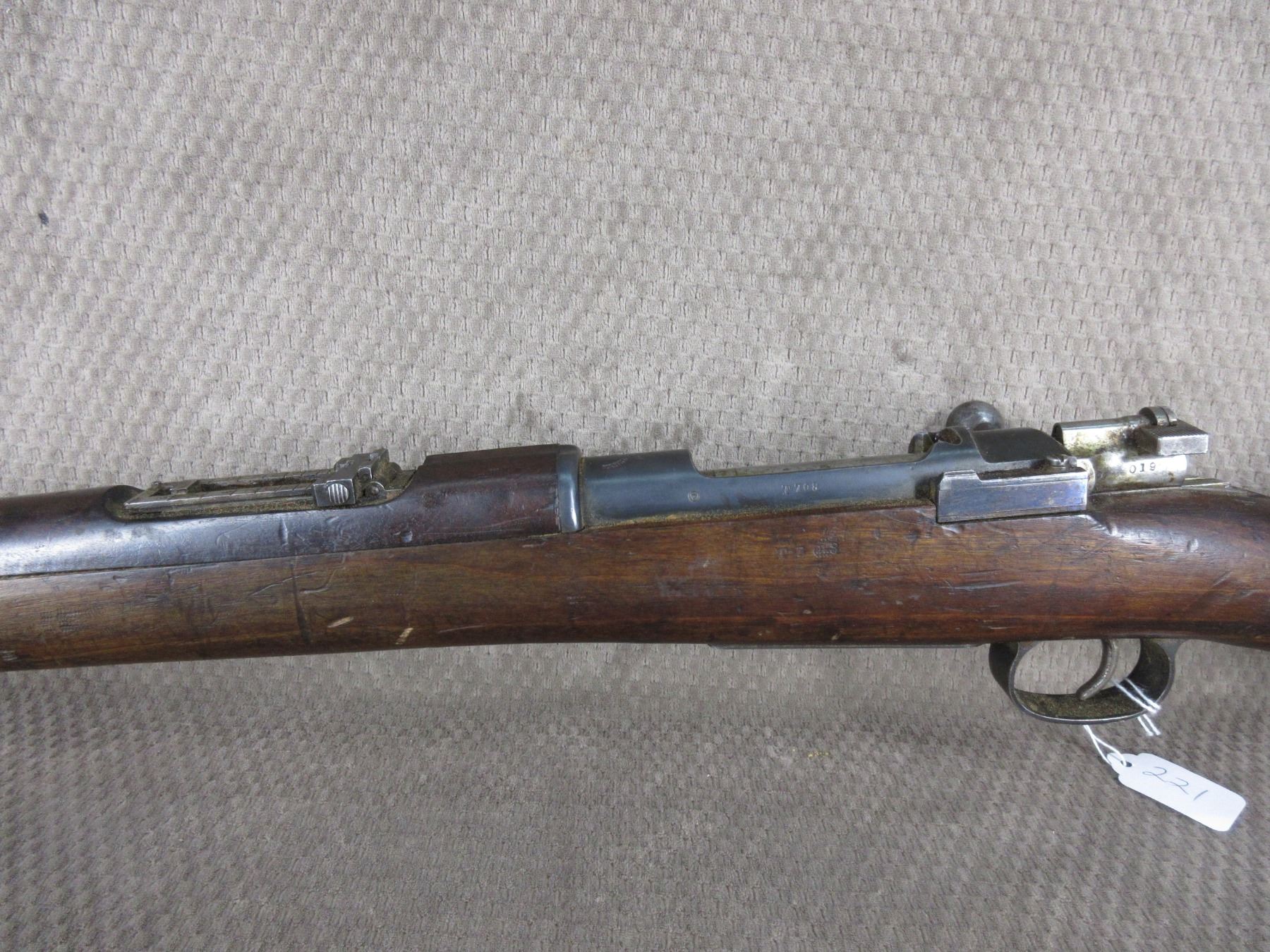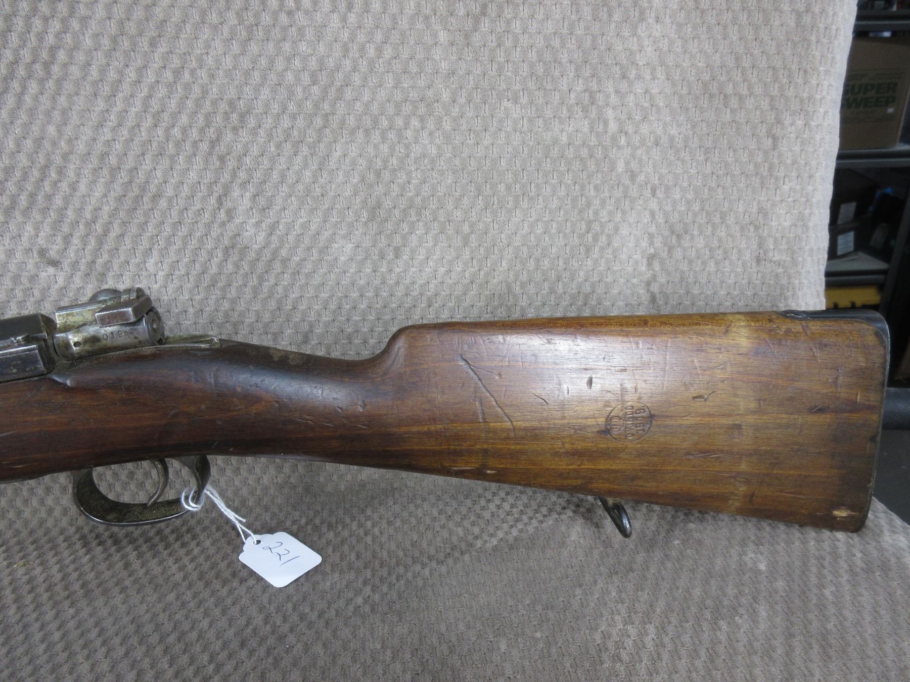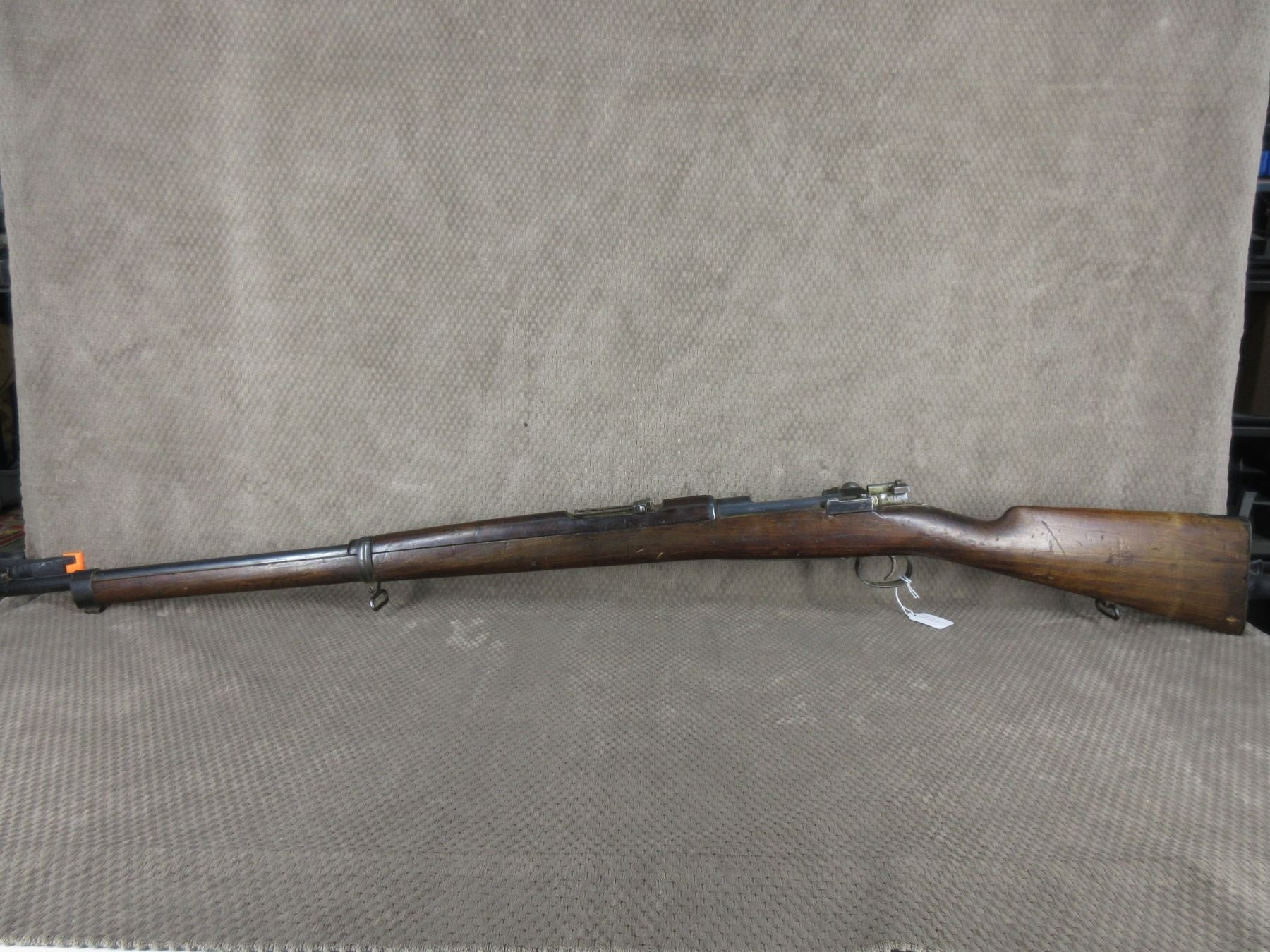 Non-Restricted - Spanish Mauser in 7MM Mauser - This bolt action shot rifle was manufactured in 1909 and appears to be in working order. Bluing is good with some pitting, rifling is dark, has both sights, wood appears to be solid with usually marks for its age, missing cleaning rod.