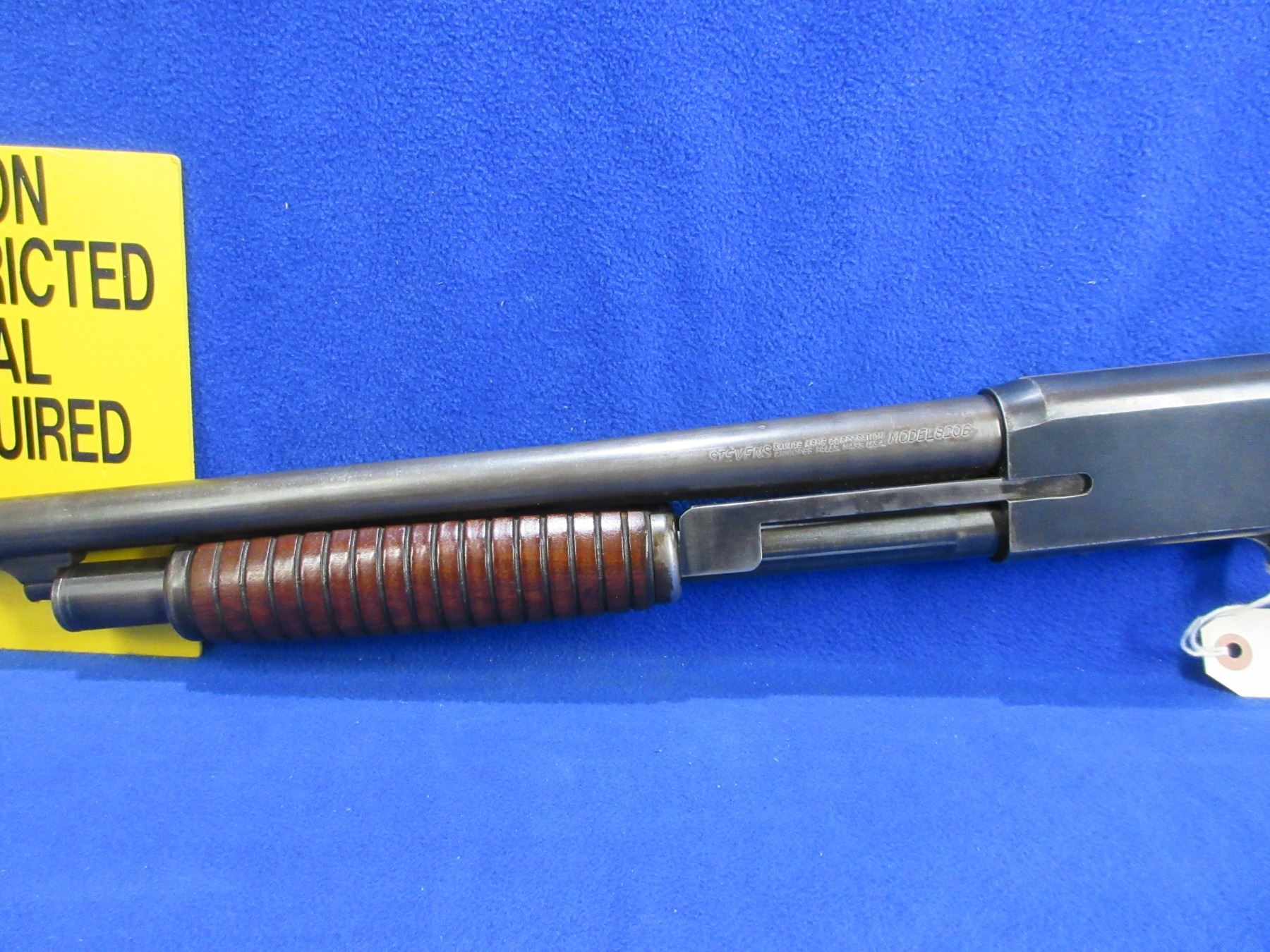 Non-Restricted - Stevens Model 820B in 12 Ga. 2 3/4" - This pump action shotgun appears to be in good to very good working order. Barrel is 28", bore is good, bluing is turning grey, has bead front sight, stock is good to very good, forearm is good to very good, rubber recoil pad good. Ser # none