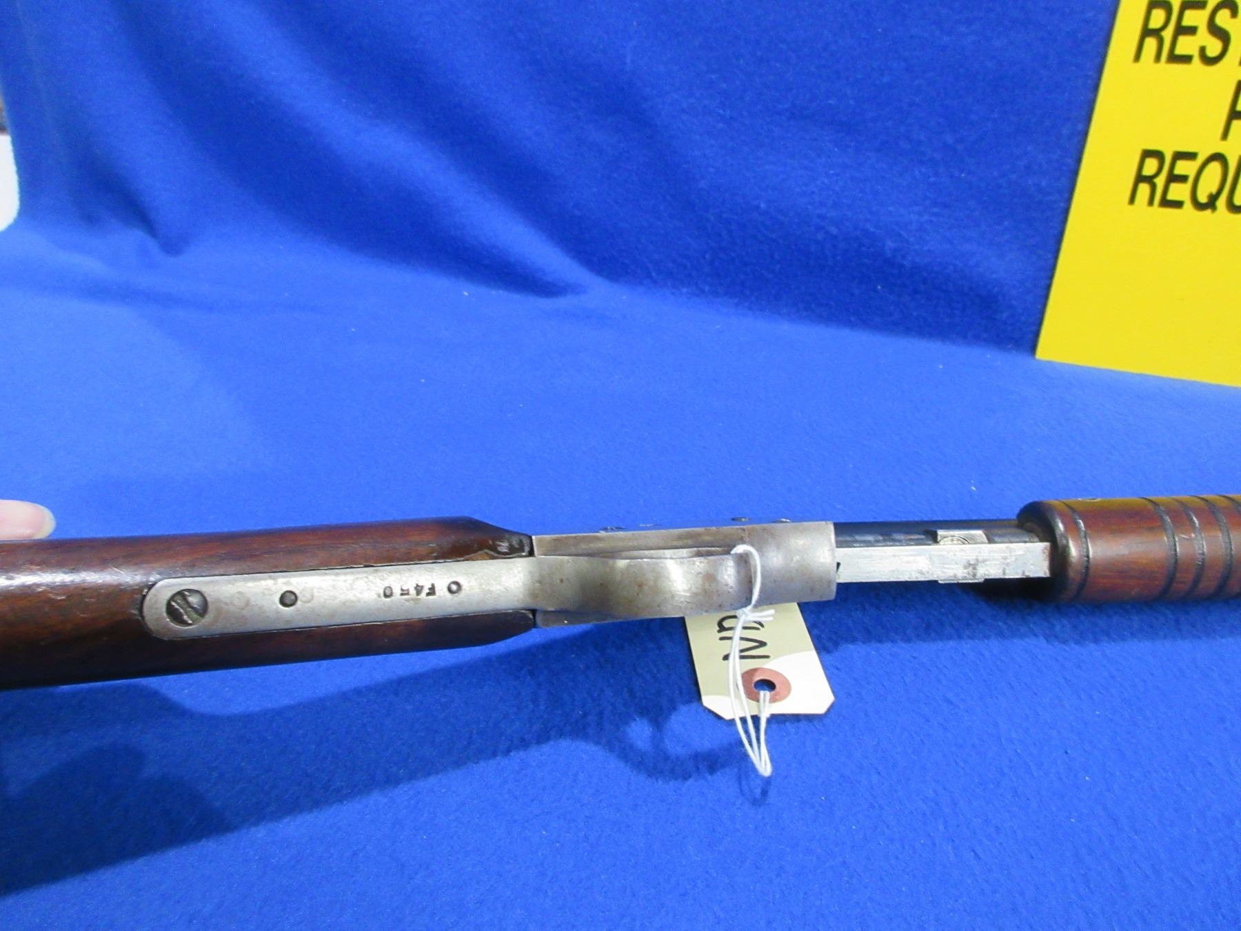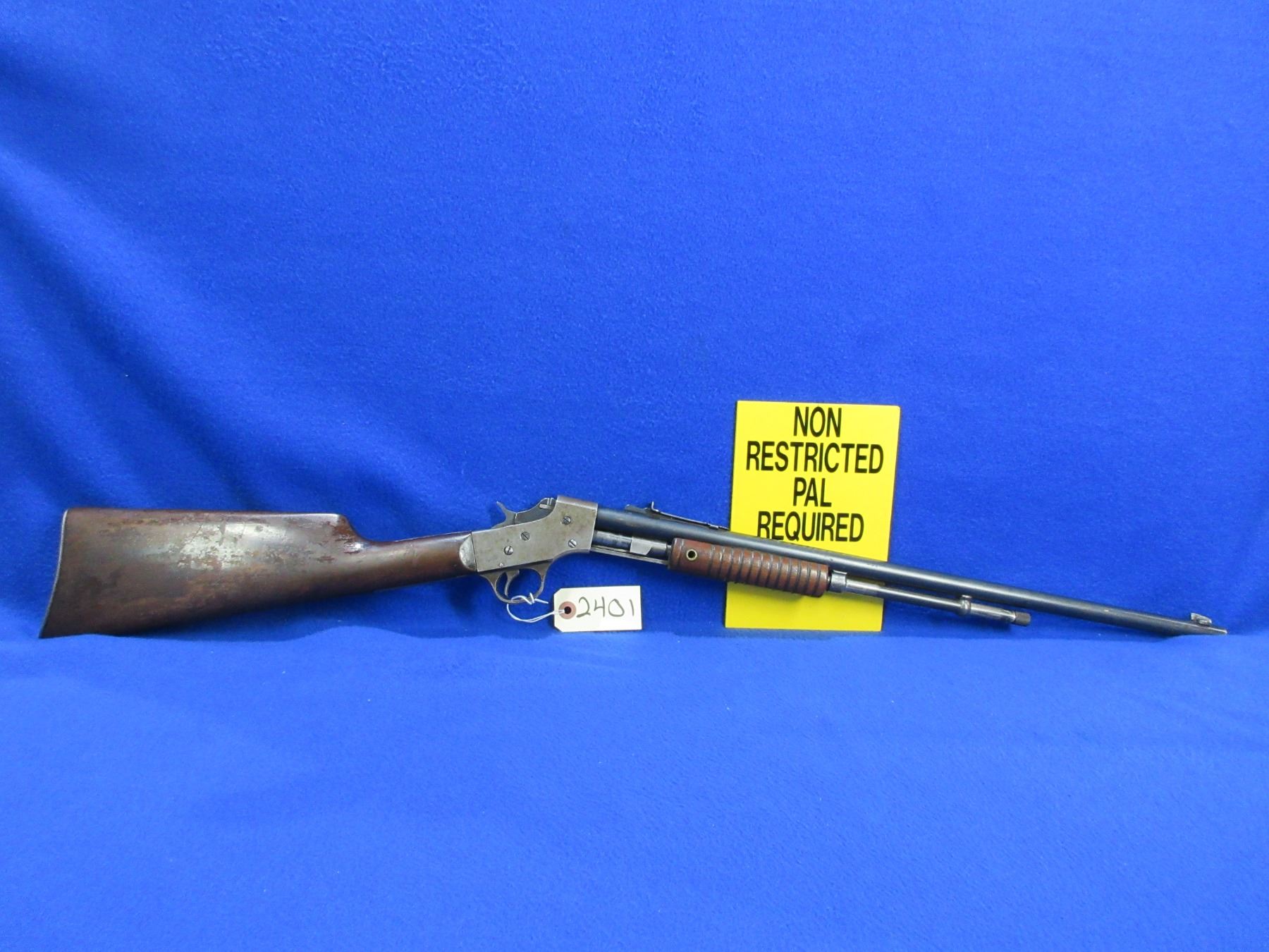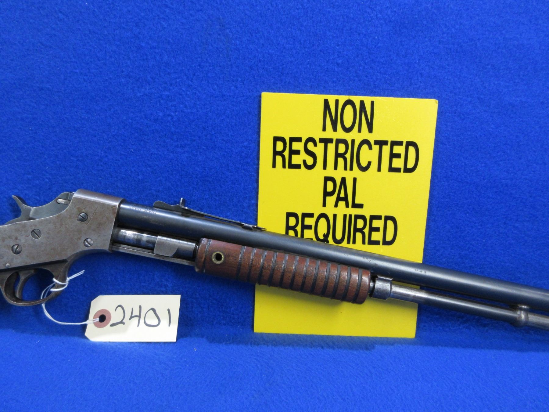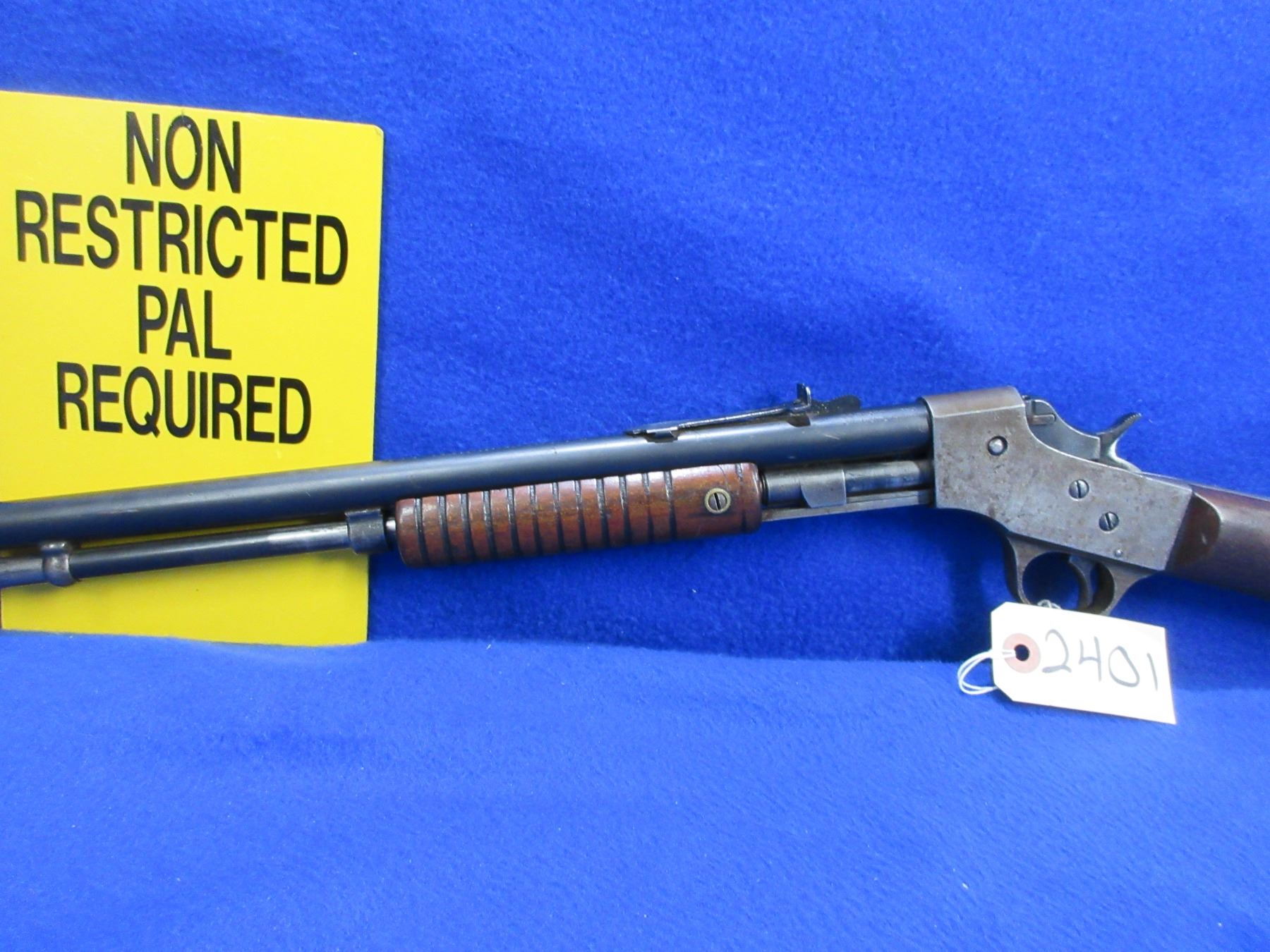 Non-Restricted - Stevens Visible Loader in 22 S/L/LR - This pump action rifle with tube magazine appears to be in good to very good working order. Barrel is 22", rifling is good to very good, bluing is good with some light pitting, has both sights, stock is good to very good with usage marks and finish flaking, forearm is good to very good for age but missing screw on right side, metal butt plate good. Ser # F450