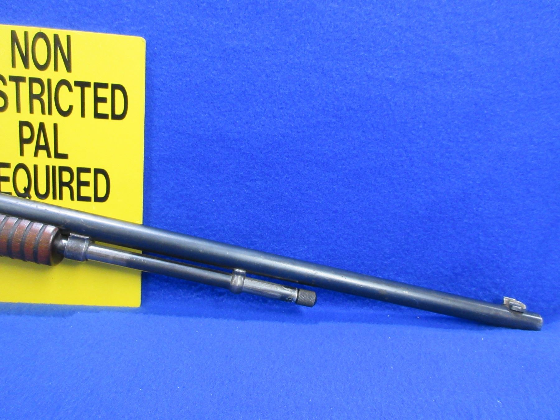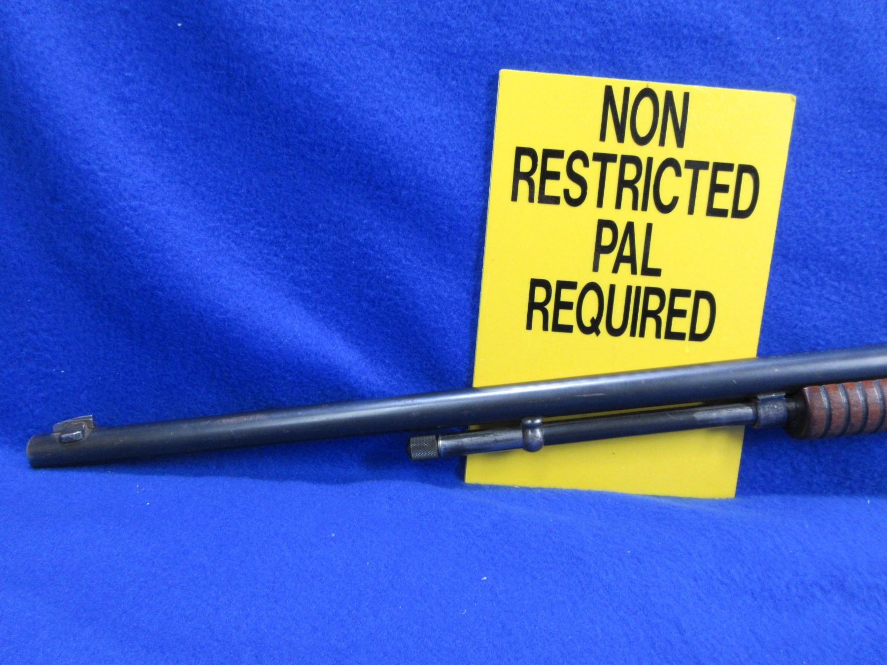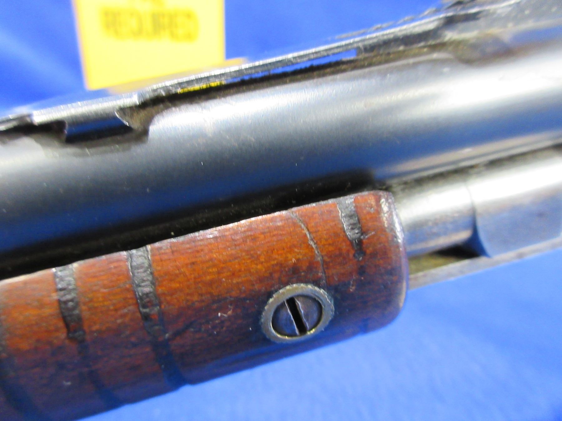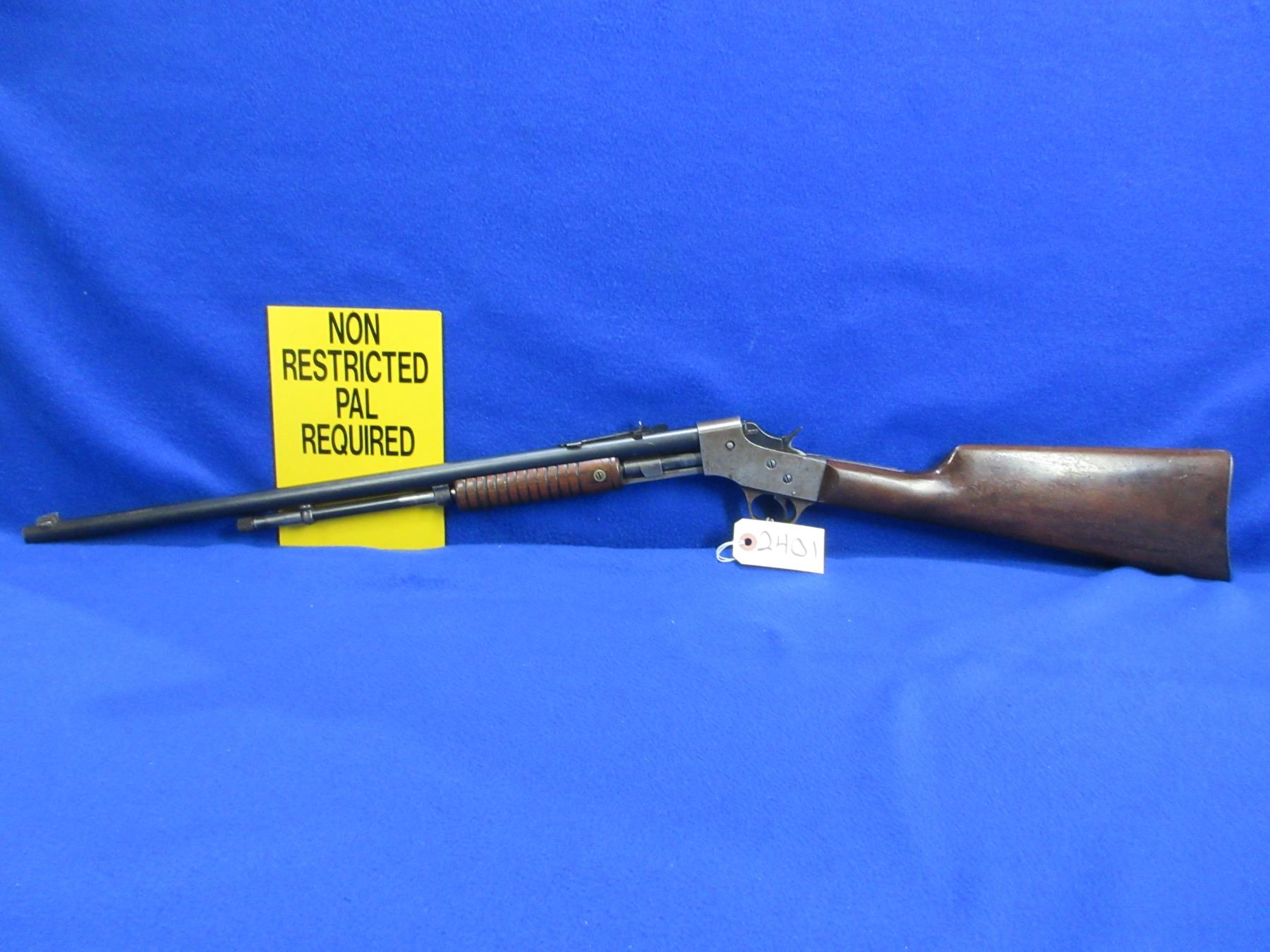 Non-Restricted - Stevens Visible Loader in 22 S/L/LR - This pump action rifle with tube magazine appears to be in good to very good working order. Barrel is 22", rifling is good to very good, bluing is good with some light pitting, has both sights, stock is good to very good with usage marks and finish flaking, forearm is good to very good for age but missing screw on right side, metal butt plate good. Ser # F450