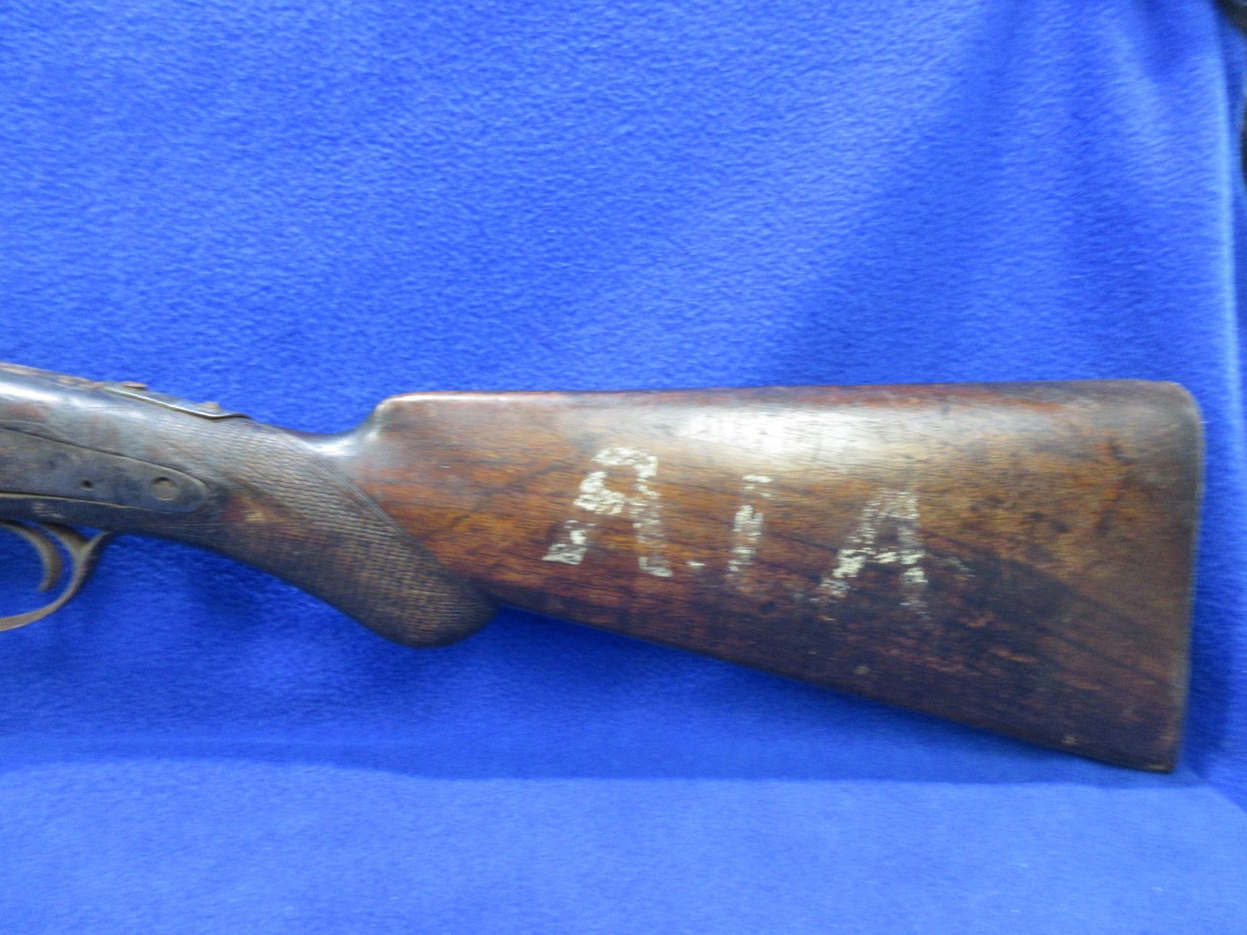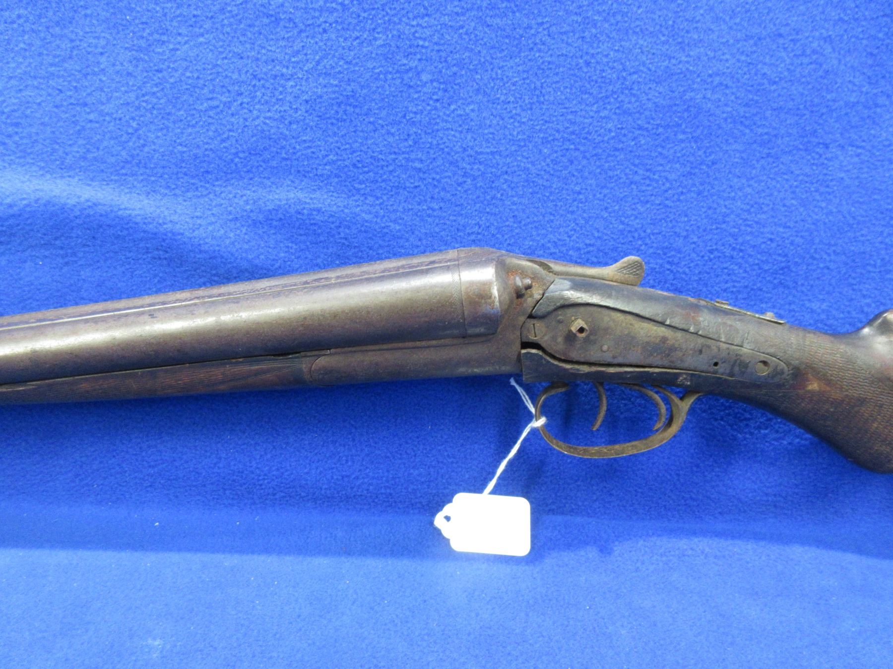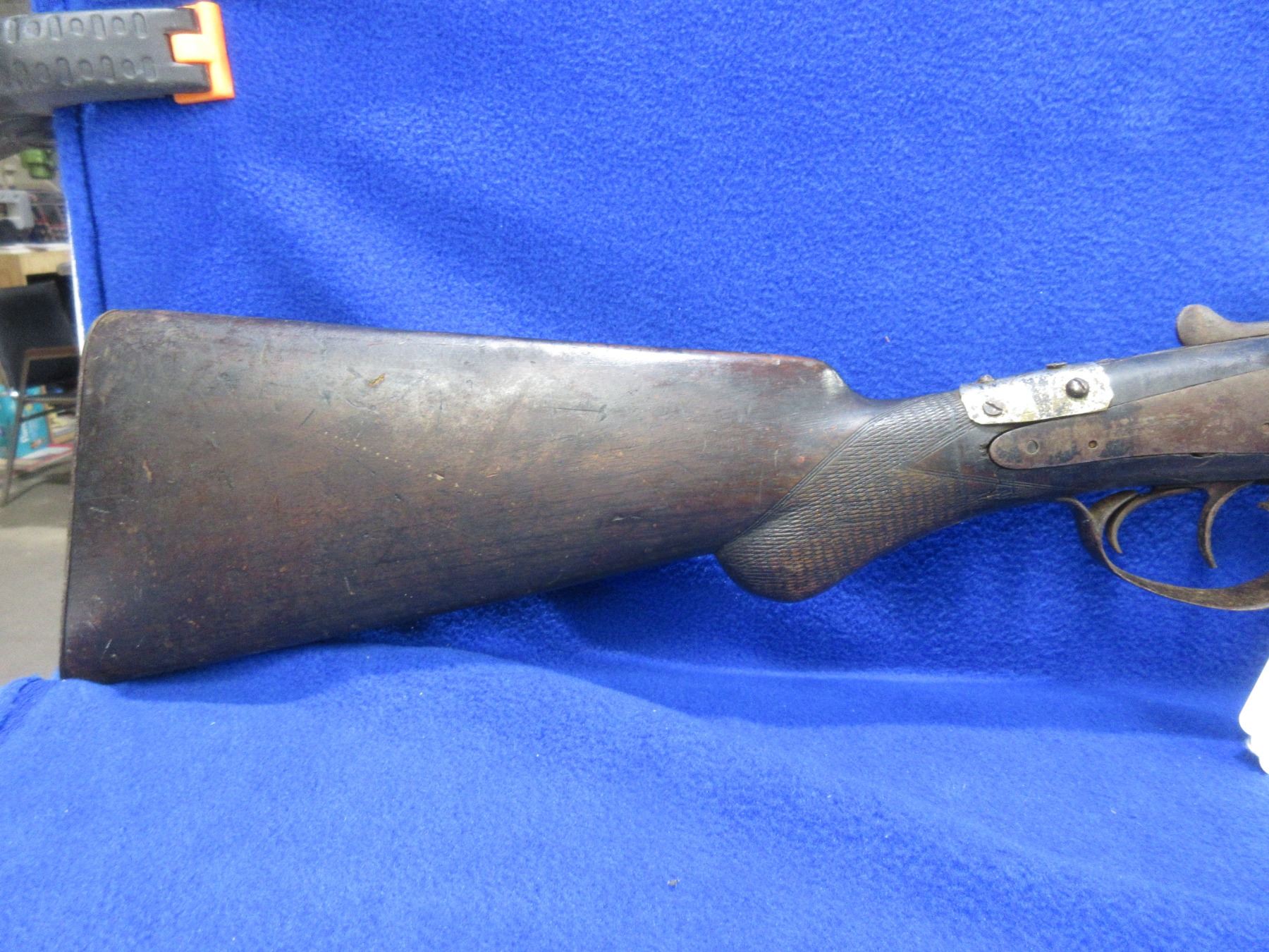 Non-Restricted - T. Parker Side by Side in 10 Ga. - This tip up SXS shotgun appears to be in non working order as it is missing the hammers. Barrels are 30", bores are fair to good, bluing is mostly gone, has bead front sight, stock is broken and poorly repaired, forearm is good, metal butt plate good. Ser # 4W