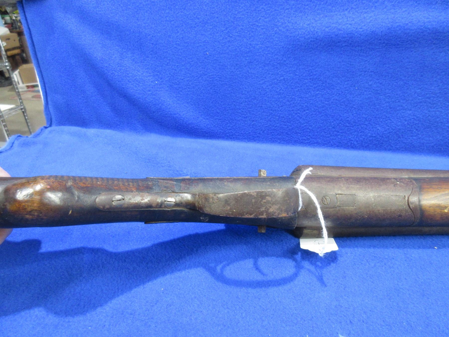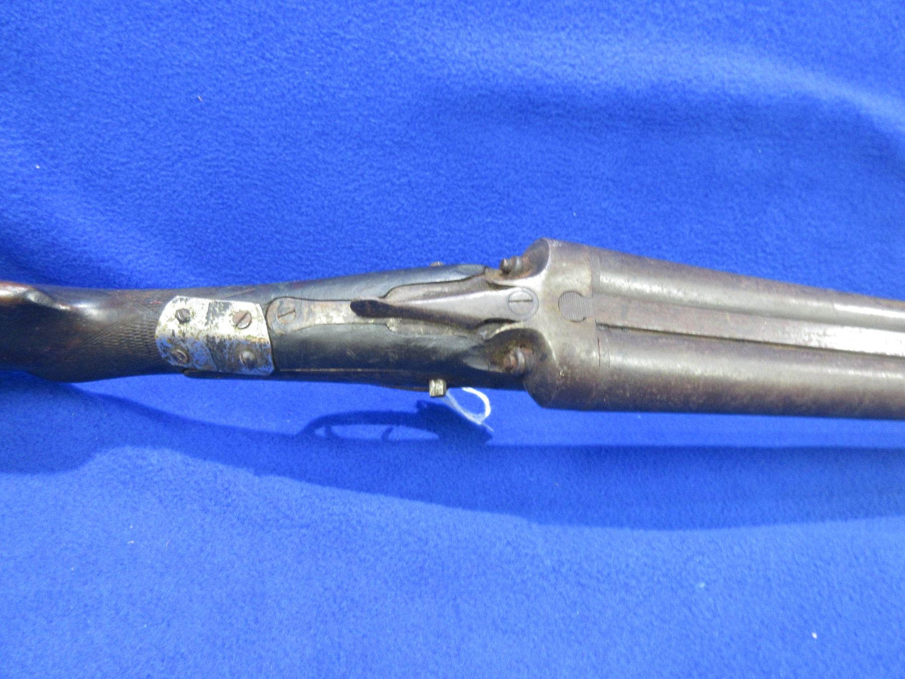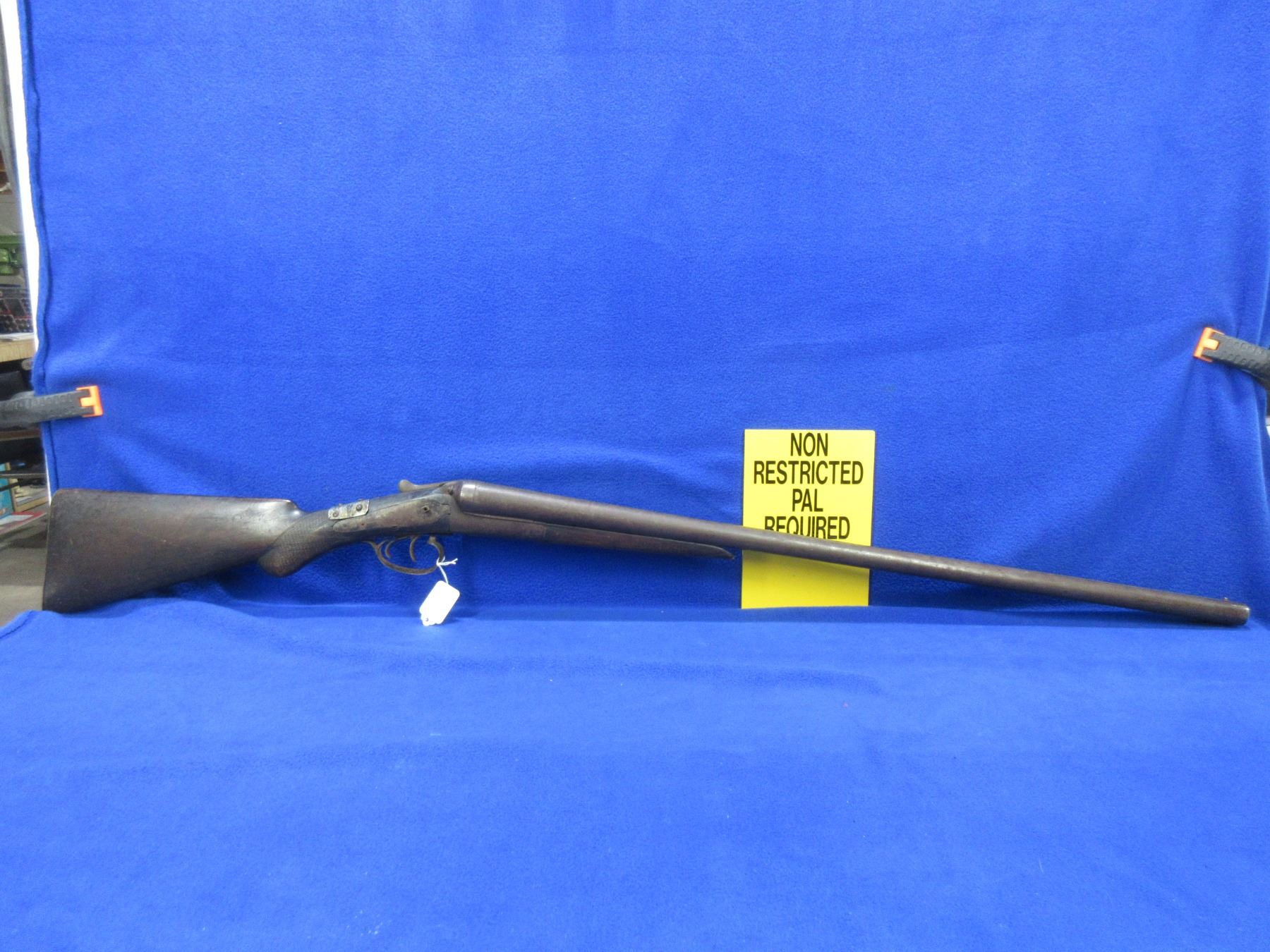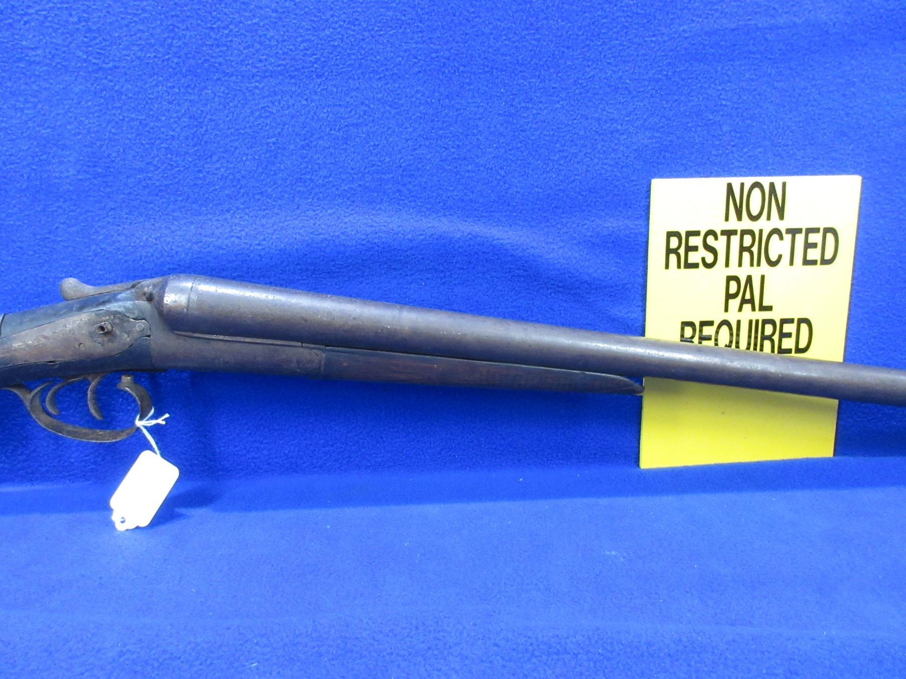 Non-Restricted - T. Parker Side by Side in 10 Ga. - This tip up SXS shotgun appears to be in non working order as it is missing the hammers. Barrels are 30", bores are fair to good, bluing is mostly gone, has bead front sight, stock is broken and poorly repaired, forearm is good, metal butt plate good. Ser # 4W