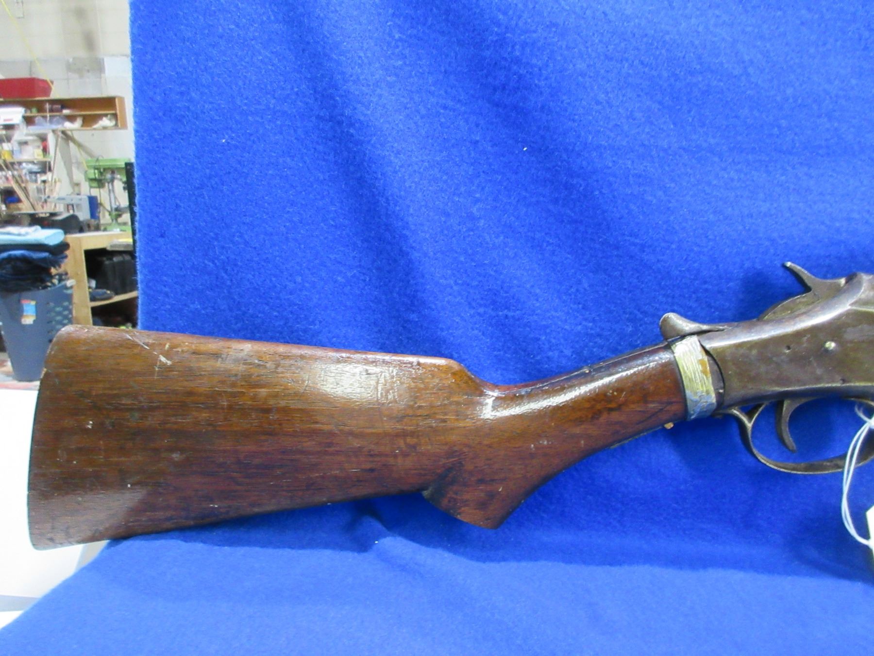 Non-Restricted - Victor Single Shot in 12 Ga. 2 1/2" - This tip up single shot shotgun appears to be in non working order as stock and forearm need replaced, action is tight. Barrel is 36", bore is good but dull, bluing is gone and appears laquered, has bead front sight, stock and forearm need replaced, butt plate missing. Ser # 620229