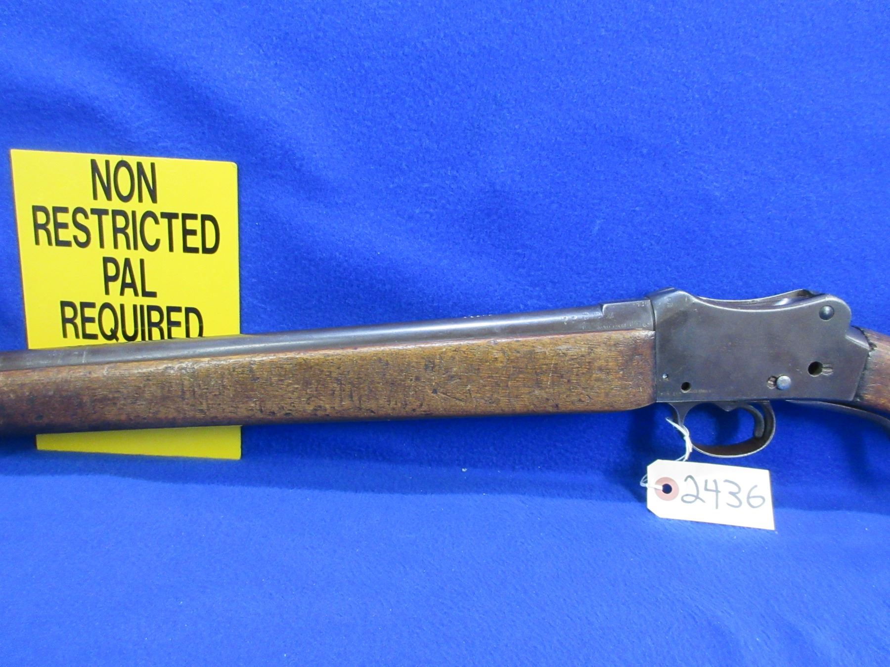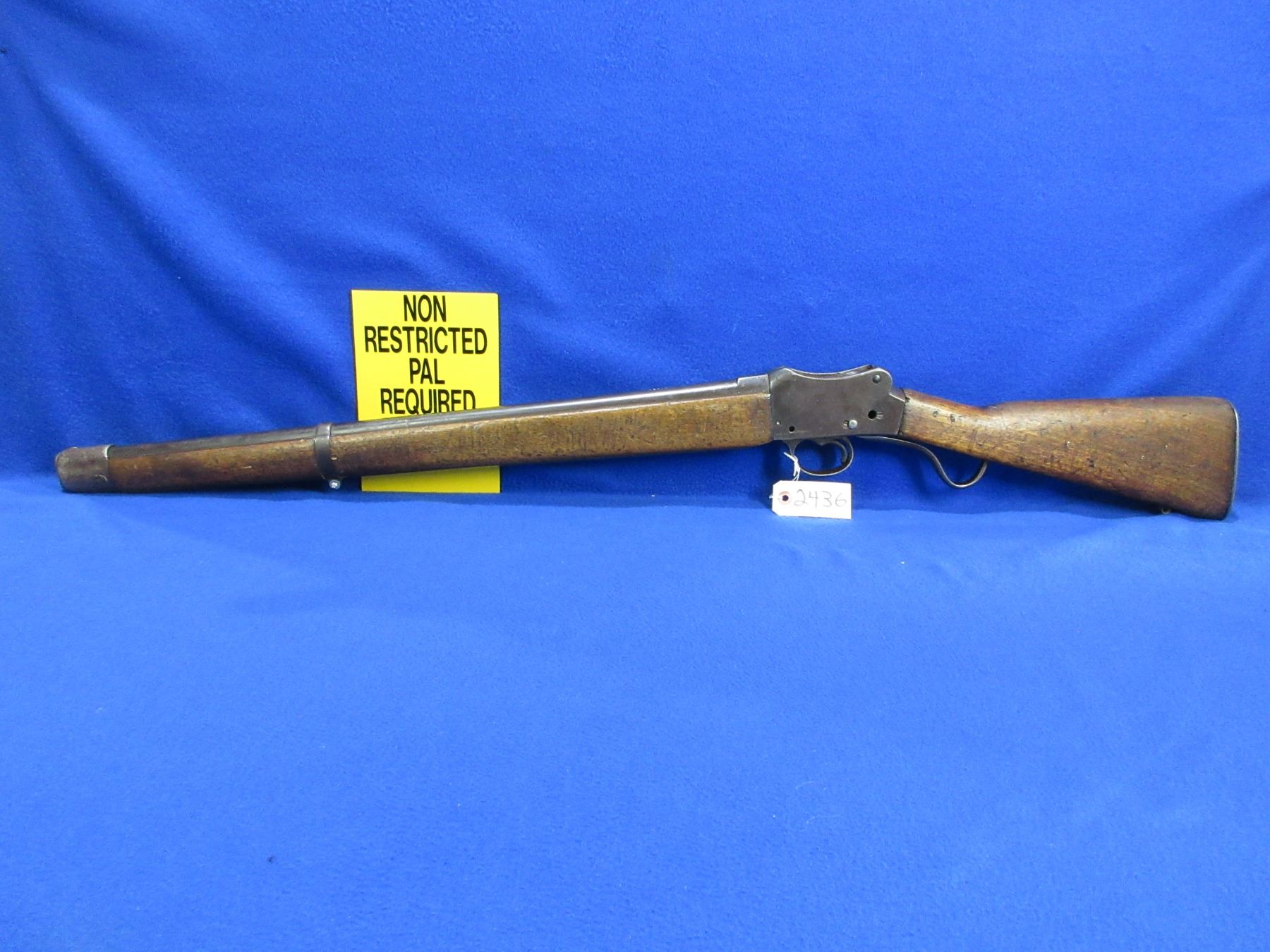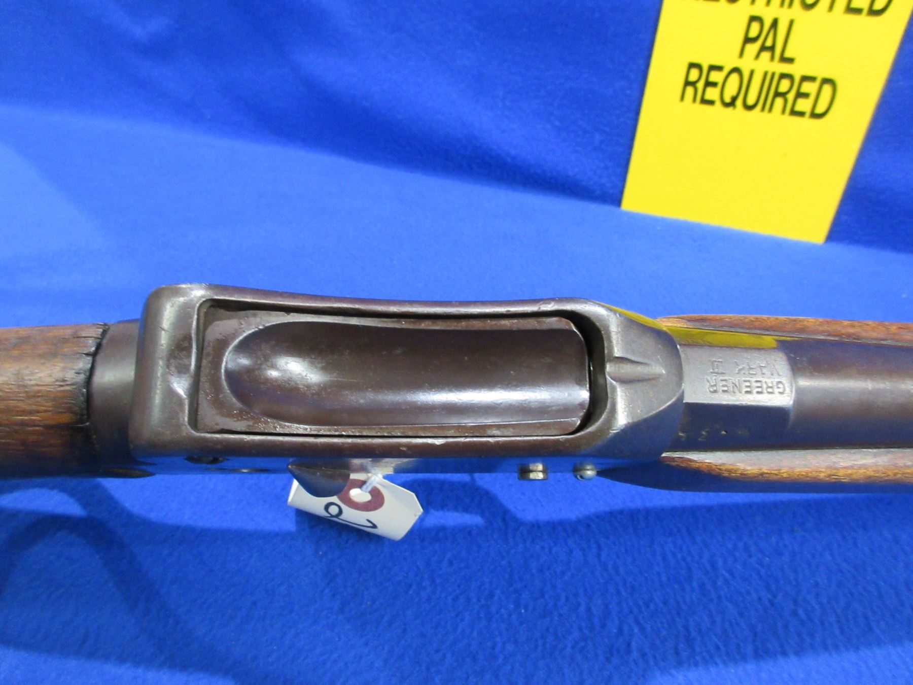 Non-Restricted - WW Greener Police Gun Mk III in 14 Ga - This single shot falling block shotgun is in non working order as the action is missing screws and pins but does seem to cock and fire. Barrel is 26", bore is fair to good, bluing is turning brown, has both sights, stock has cracks behind action, full wood forearm is good with many usage marks, has wrong barrel band screw, metal butt plate. Ser # 43004