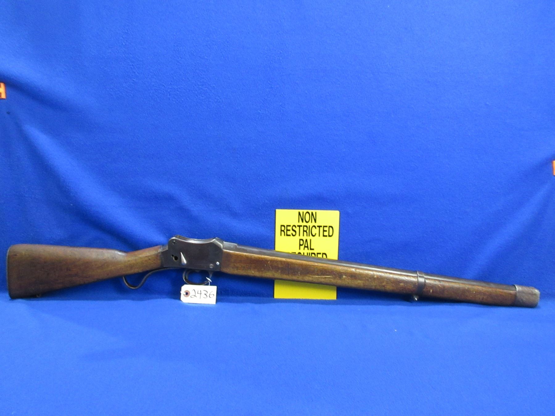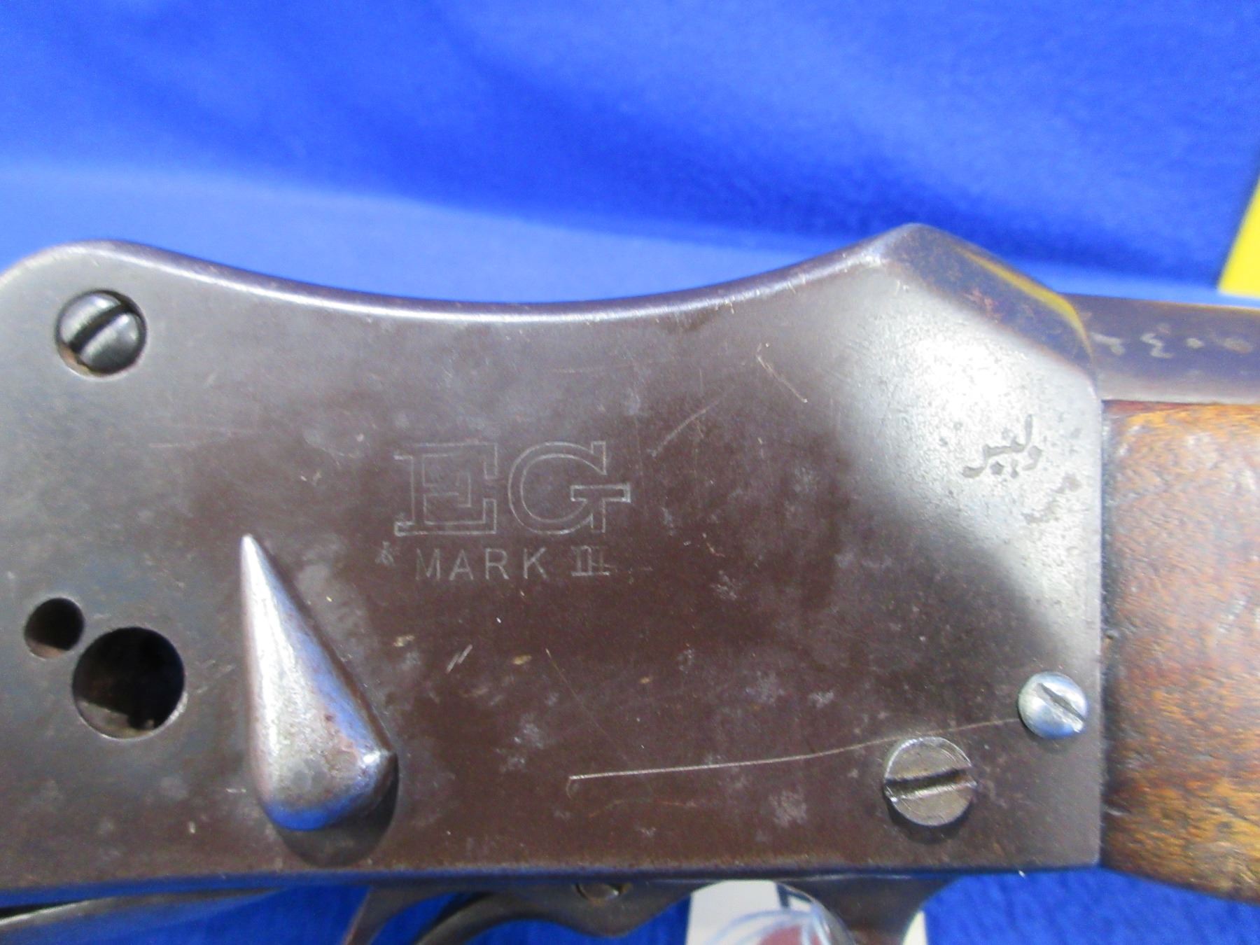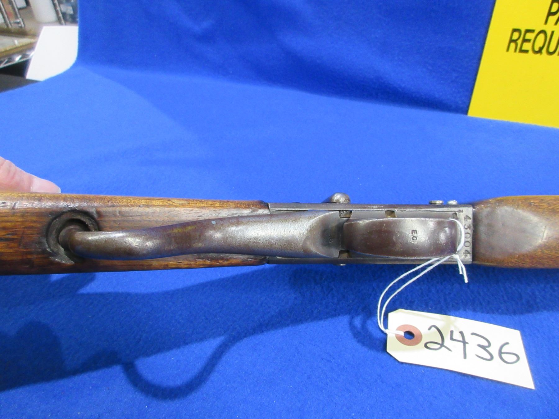 Non-Restricted - WW Greener Police Gun Mk III in 14 Ga - This single shot falling block shotgun is in non working order as the action is missing screws and pins but does seem to cock and fire. Barrel is 26", bore is fair to good, bluing is turning brown, has both sights, stock has cracks behind action, full wood forearm is good with many usage marks, has wrong barrel band screw, metal butt plate. Ser # 43004