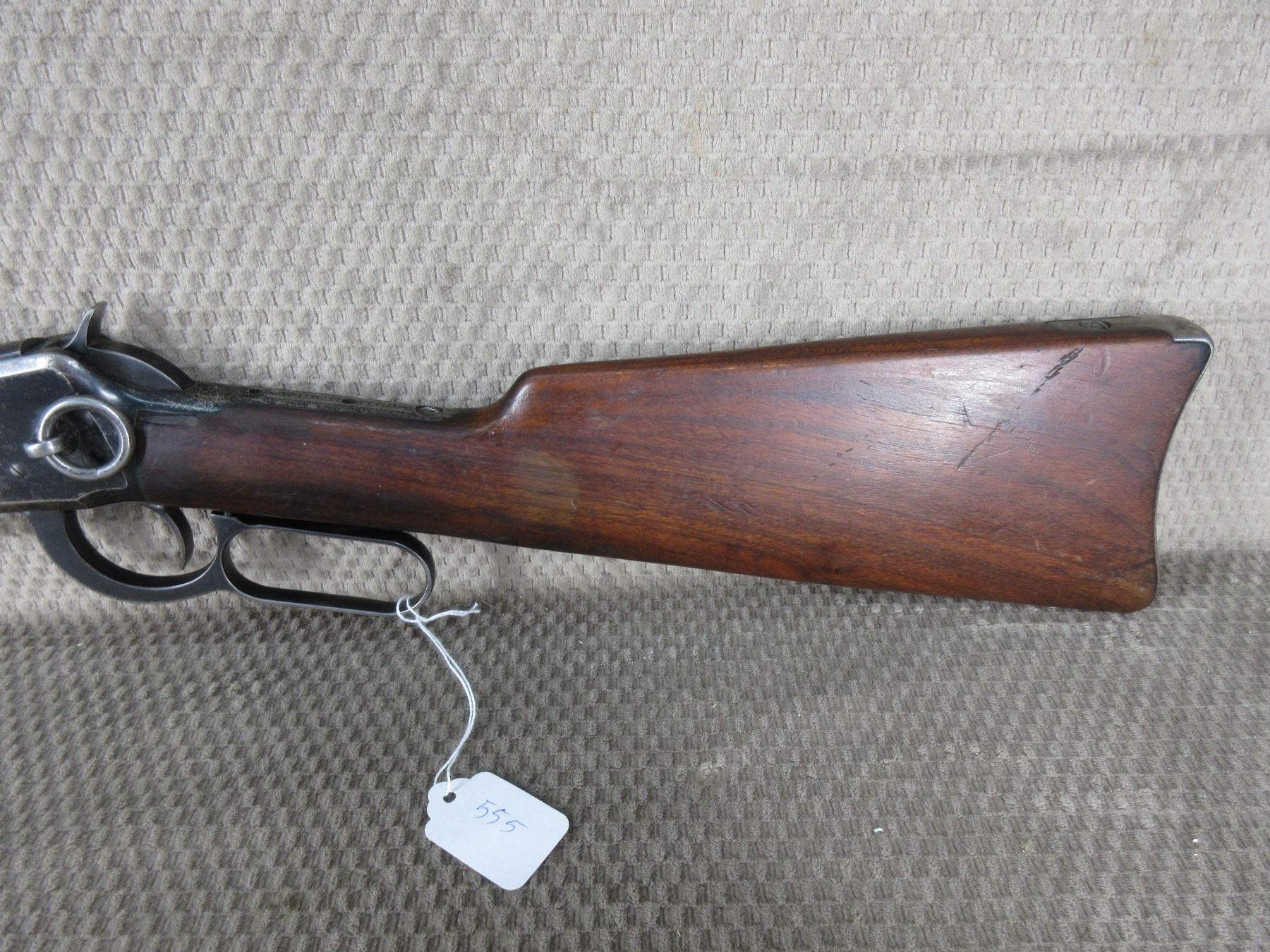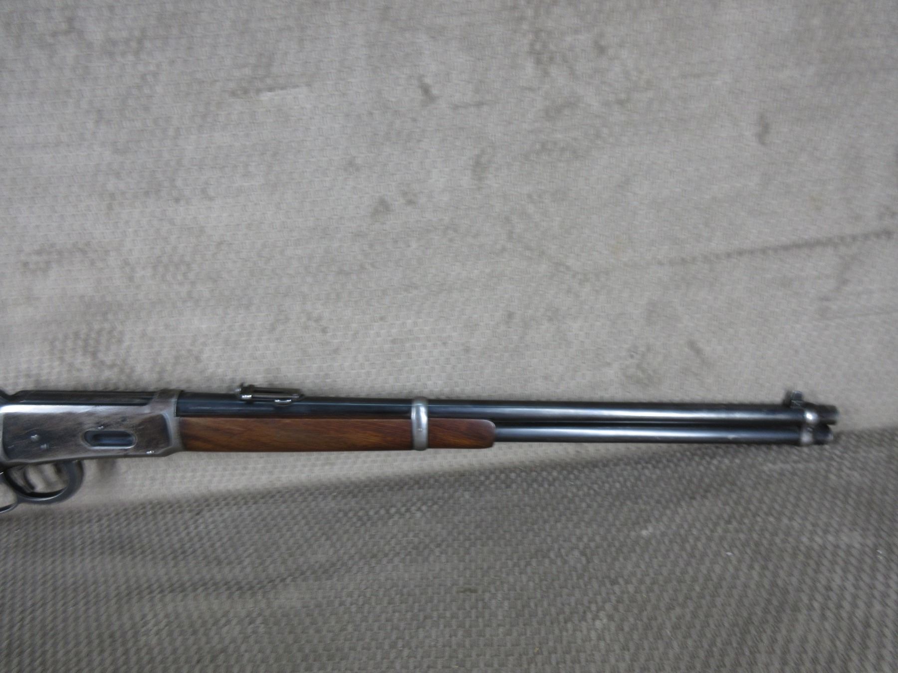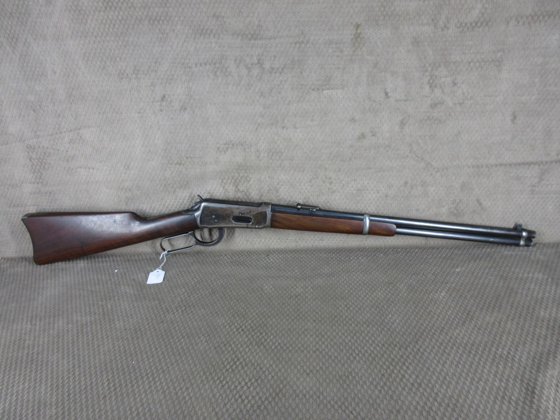 Non-Restricted - Win. 94 Saddle Ring Carbine in 30 WCF (30-30) - This lever action rifle was made in 1927 and appears to be in very good working order. Barrel is 20", rifling is very good, bluing is turning grey with typical wear spots, has both sights & tang is drilled for a peep sight (not supplied), stock is good with usage marks and a small chip missing on left side by hammer, forearm is good to very good, has steel butt plate.