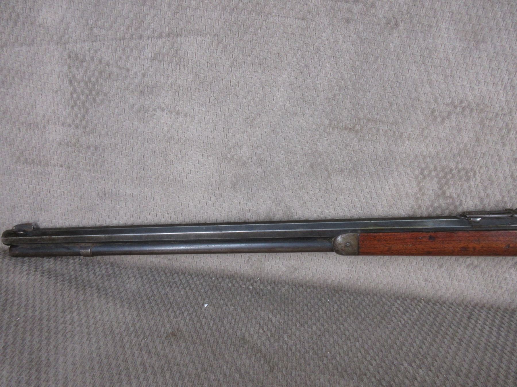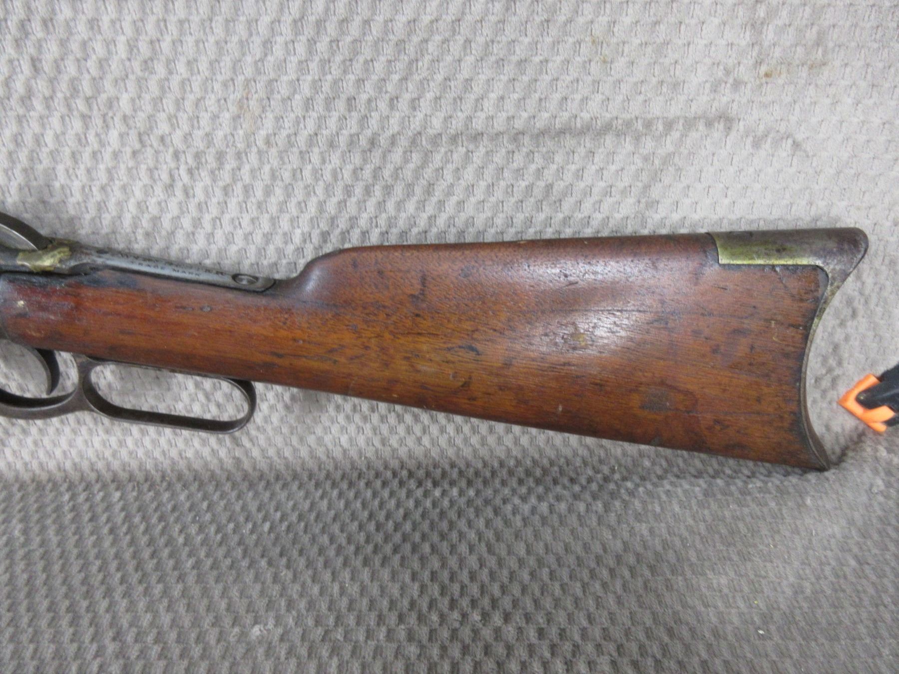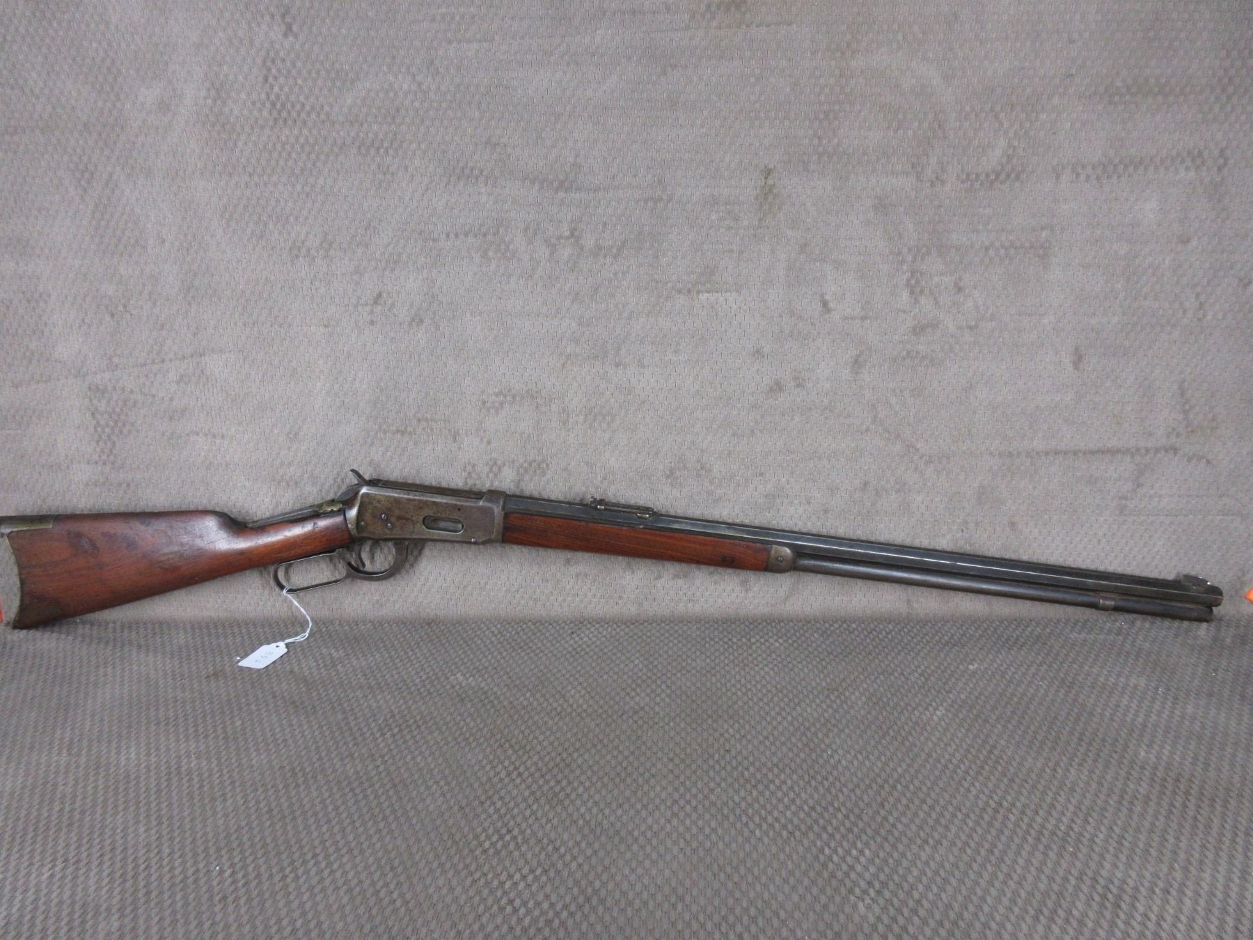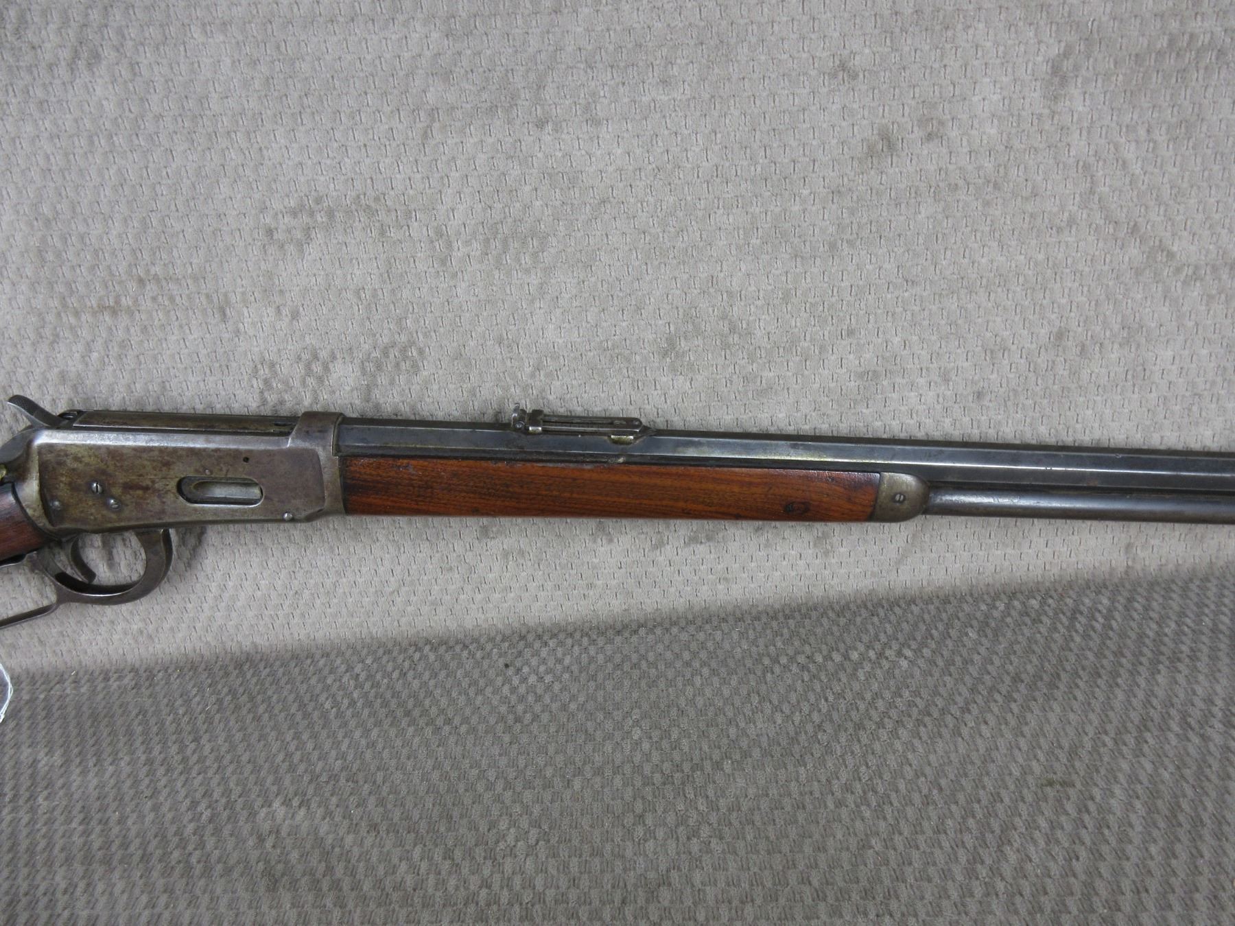 Non-Restricted - Winchester 1894 Rifle in 30 WCF (30-30) - This lever action rifle was made in 1905 and appears to be in good working order but tang has been broken off and brazed back on. Barrel is 26", rifling is good to very good but quite dark, bluing is turning grey with wear spots, has both sights, stock is incorrect and may have been off an 1873, forearm is good with usual marks, has steel butt plate (probably 1873).