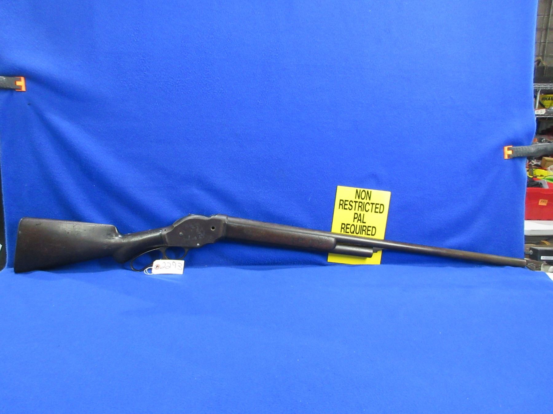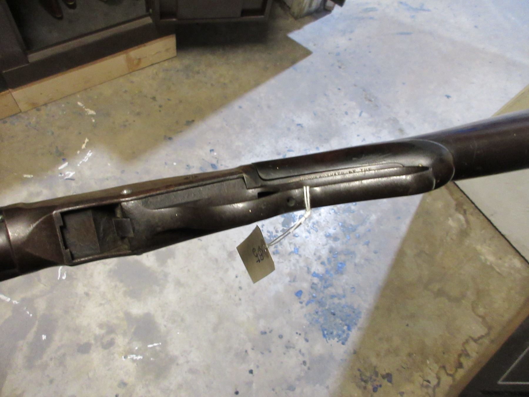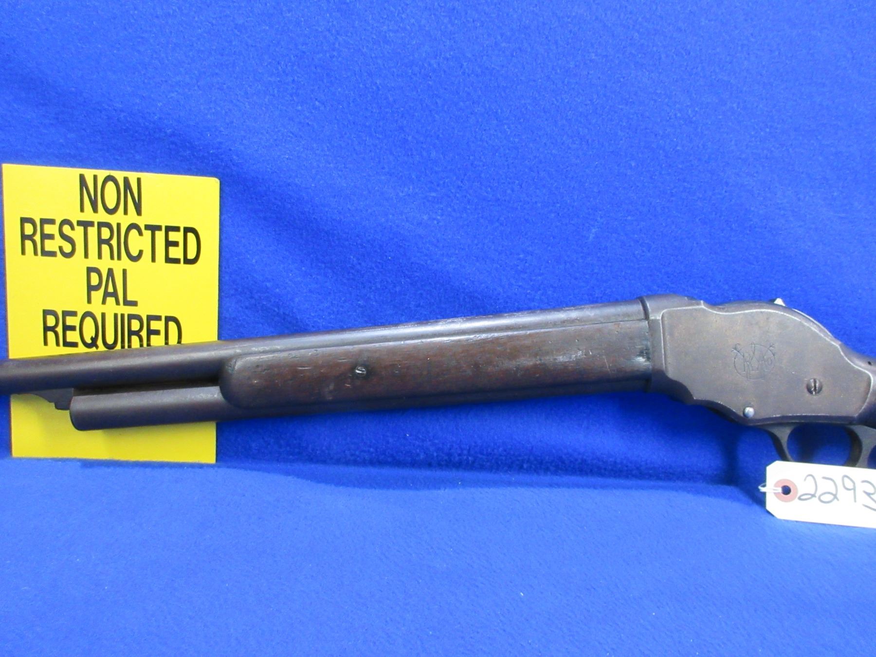 Non-Restricted - Winchester Model 1887 in 12 Ga 2 3/4" - Made in 1888, this lever action shotgun with tube magazine appears to be in non working order as the trigger is missing. Barrel is 30", bore is poor, bluing is mostly brown, front bead sight is worn off, screw is missing in the action and at top tang, stock is good for age with many usage marks and a chip at the toe, forearm is good for age with many usage marks, metal butt plate. Ser # 16324