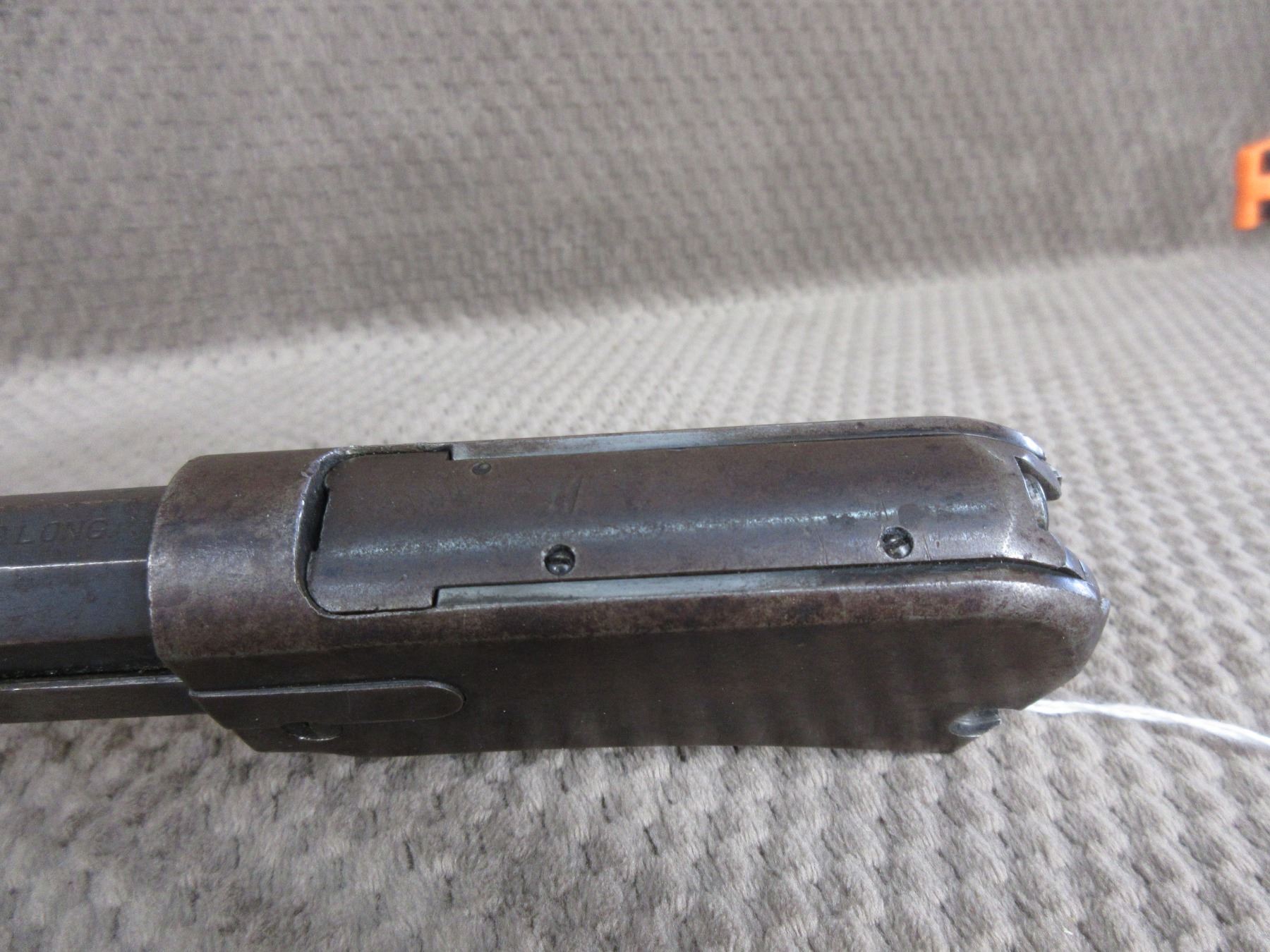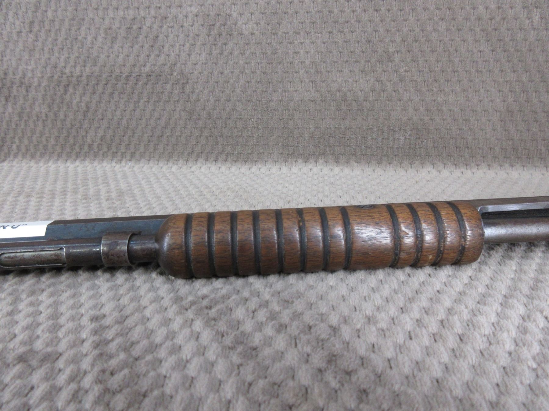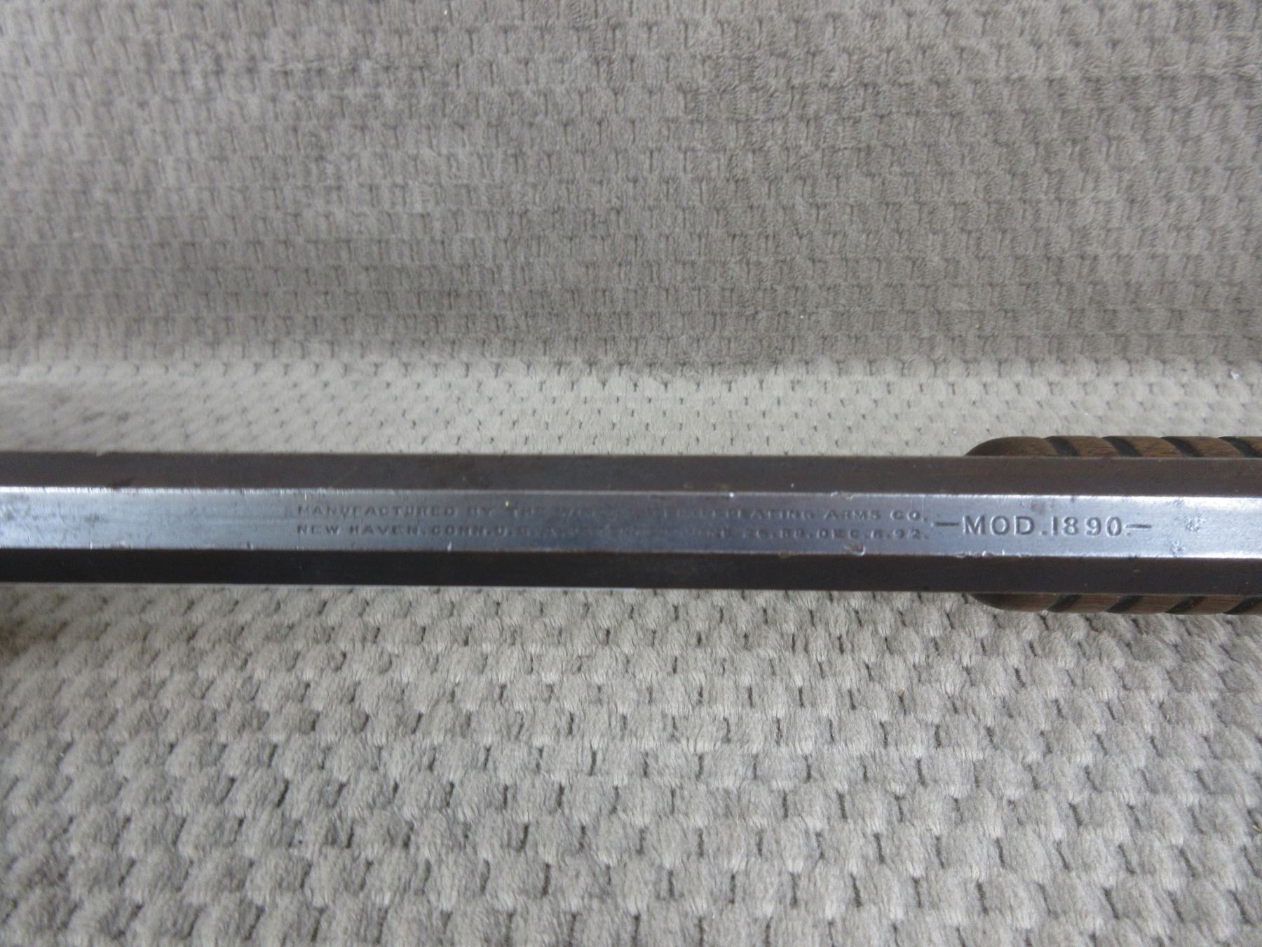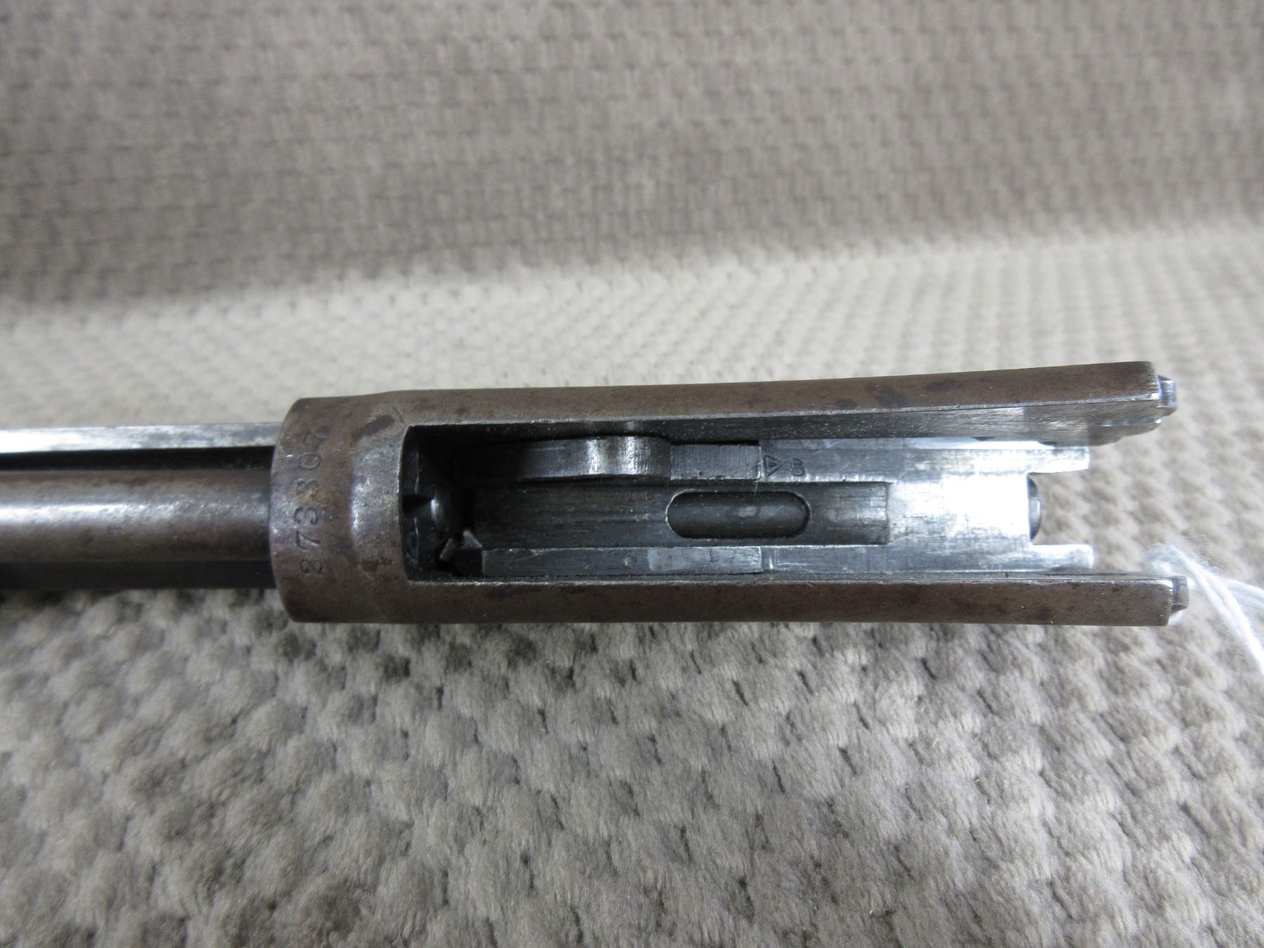 Non-Restricted - Winchester Model 1890 in 22 Long Only - This barrel has 2 addresses on it, 1 the standard Winchester address and the other is Browning Bros. Co. Ogden U. The serial # 273307 puts it as a second model made in 1906. This receiver and barrel of a pump action rifle with tube magazine is in non working order as the trigger assembley and stock portion is missing but what we have appears to work. The octogan barrel is 23 1/4", bluing is brown or gone, rifling is poor, has front sight, missing rear sight, forearm good and has both screws. This was found as is in a farm house in Saskatchewan.