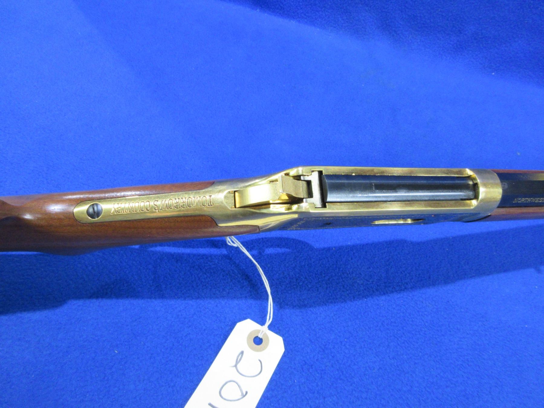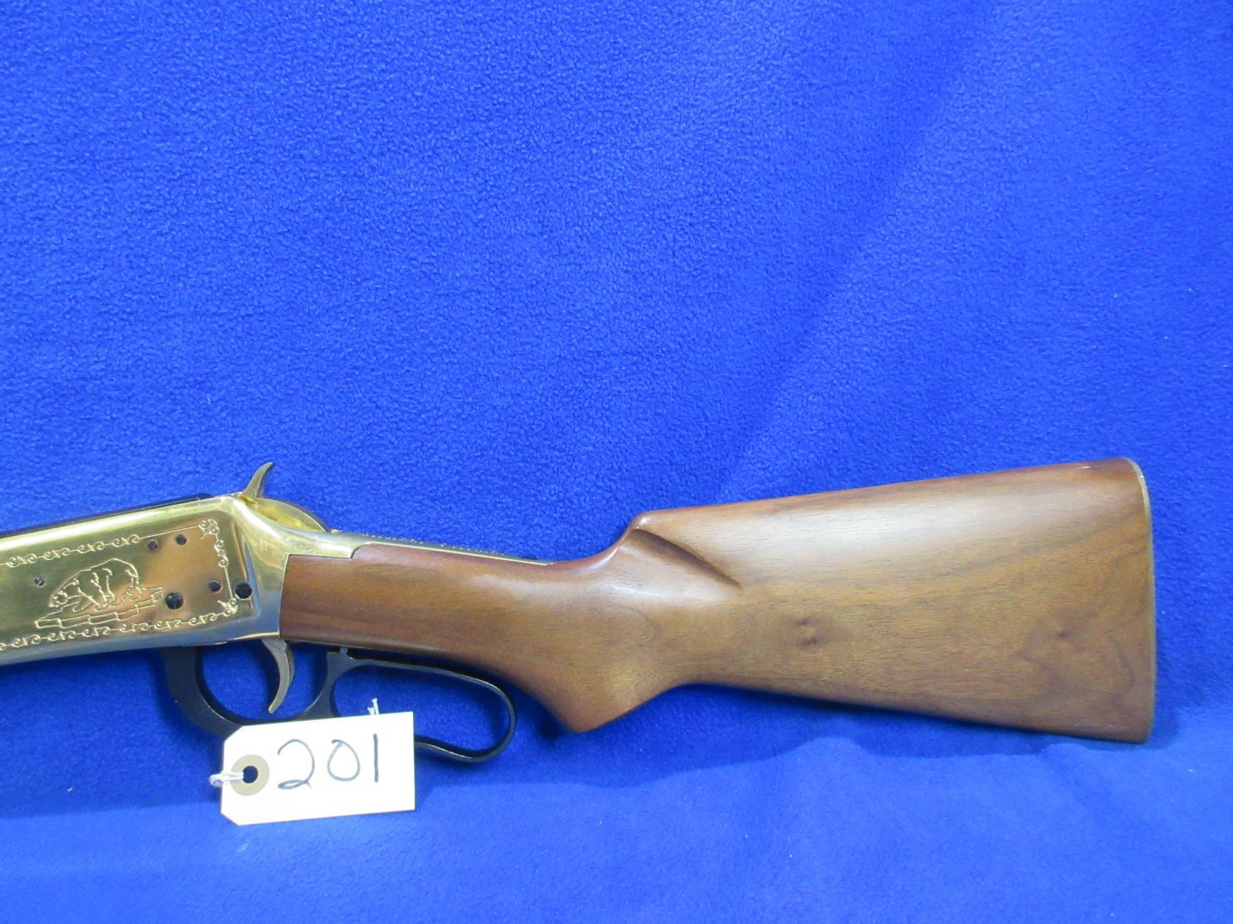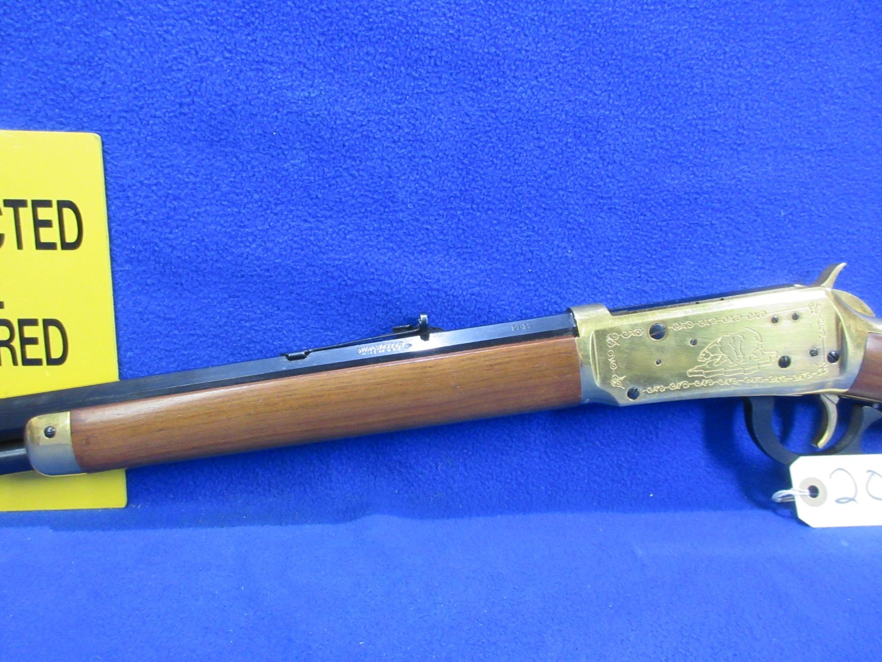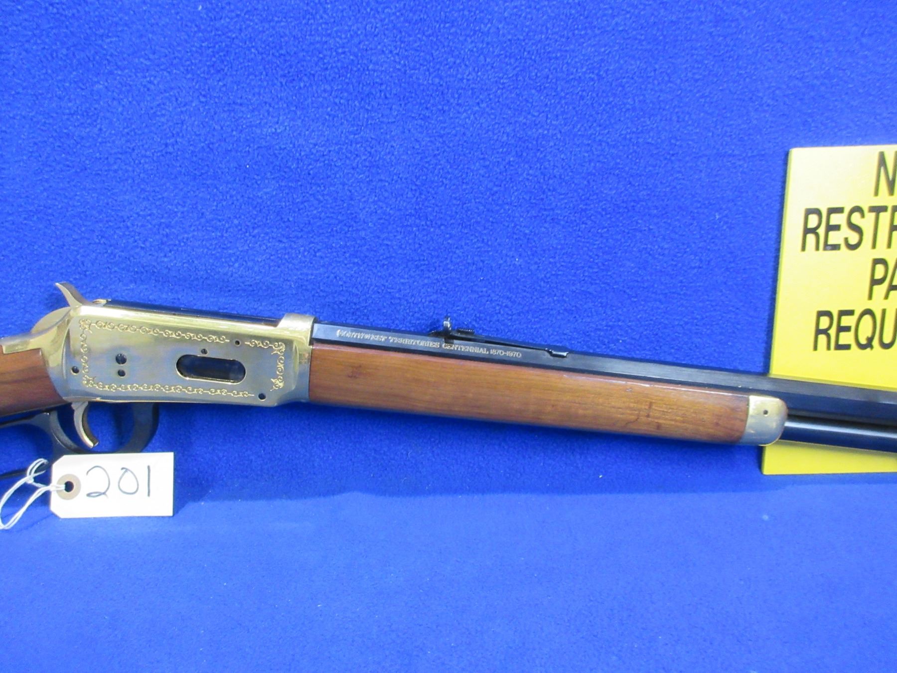 Non-Restricted - Winchester Model 1894 in 30-30 Win - Marked "Northwest Territories Centennial 1870-1970" this is a desirable Canadian commemorative lever action rifle with tube magazine, featuring gold-plated accents, special Arctic engravings (like Nanook the polar bear), a unique medallion, and the "NWT" serial prefix, celebrating the NWT's 100th anniversary as a Canadian territory, gold plated action appears to be in good to very good working order. Octagon barrel is 24", rifling is good to very good, bluing is good to very good, has both sights, stock is good to very good, forearm is good to very good with minor usage marks, length of pull is 13 1/2", gold plated butt plate good. Ser # NWT1700