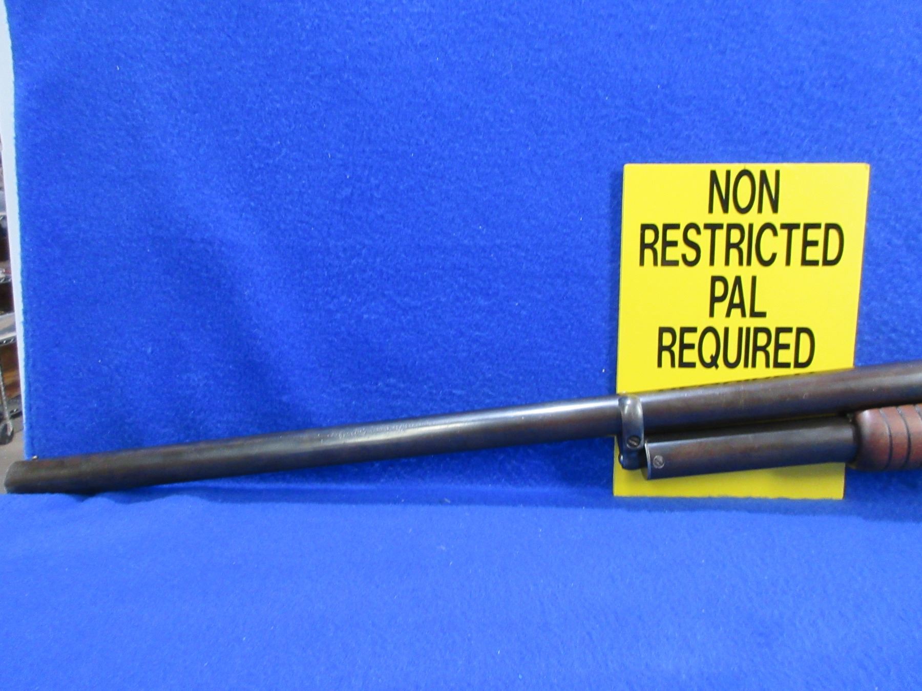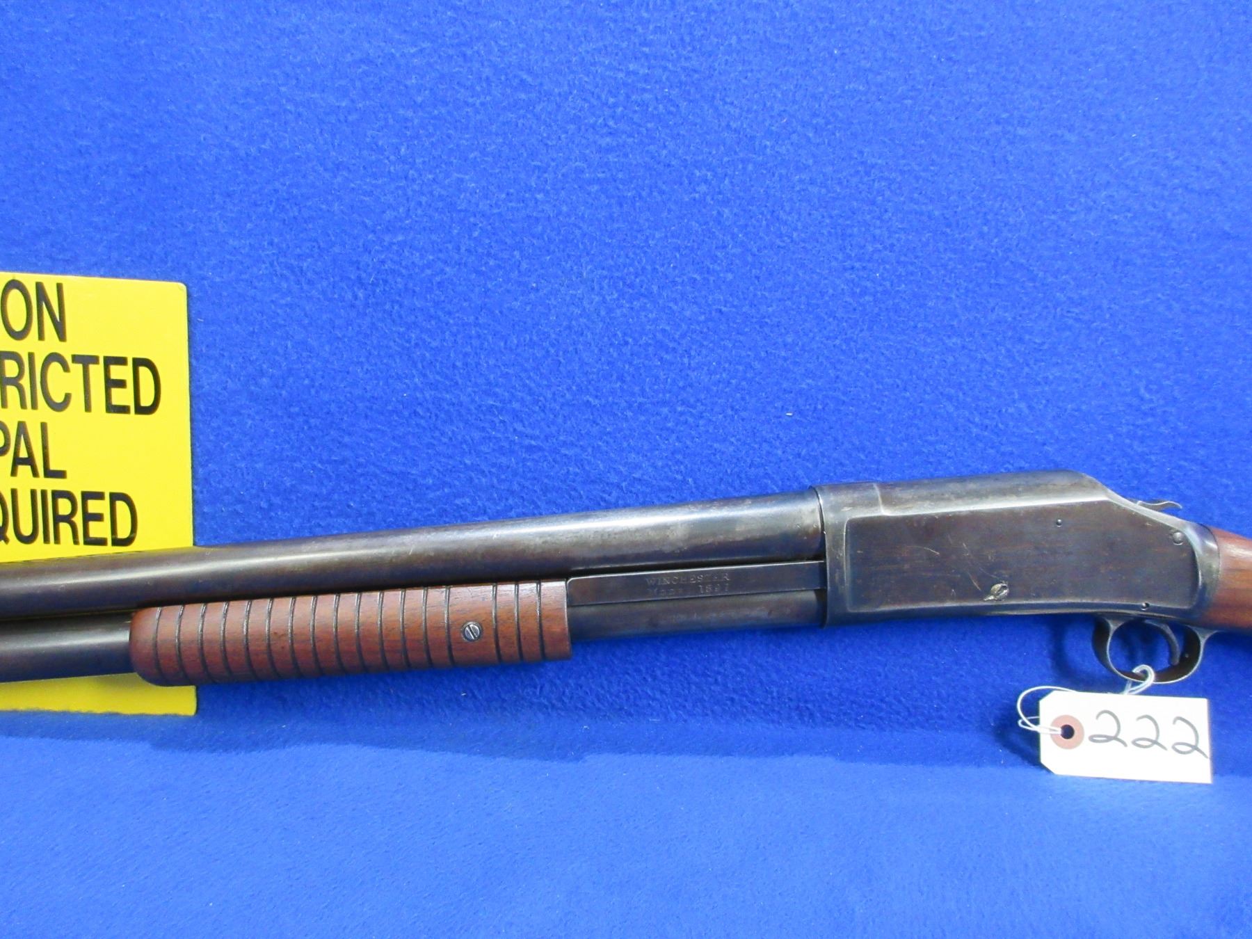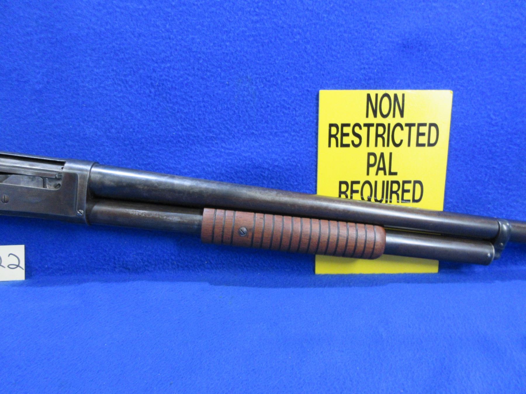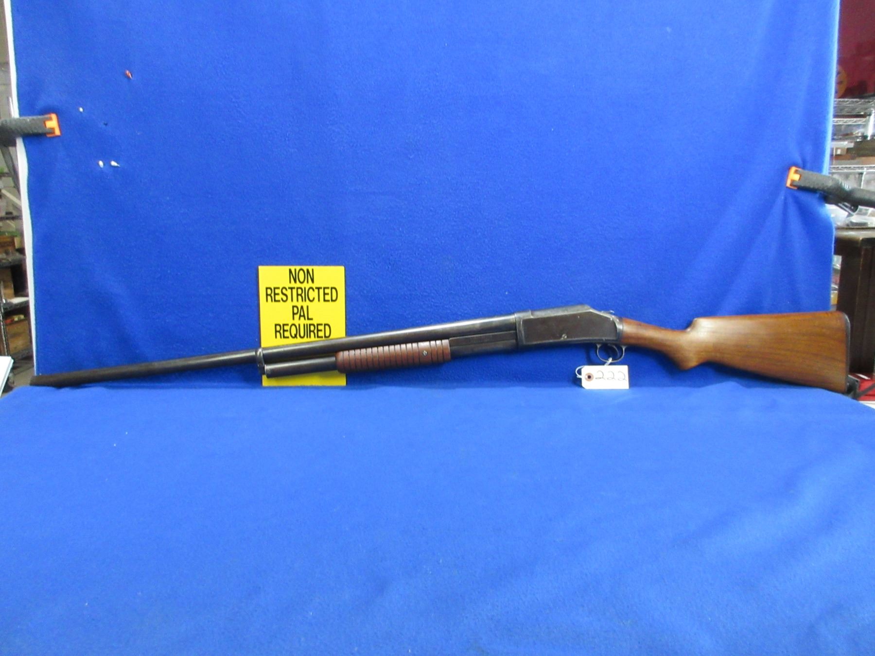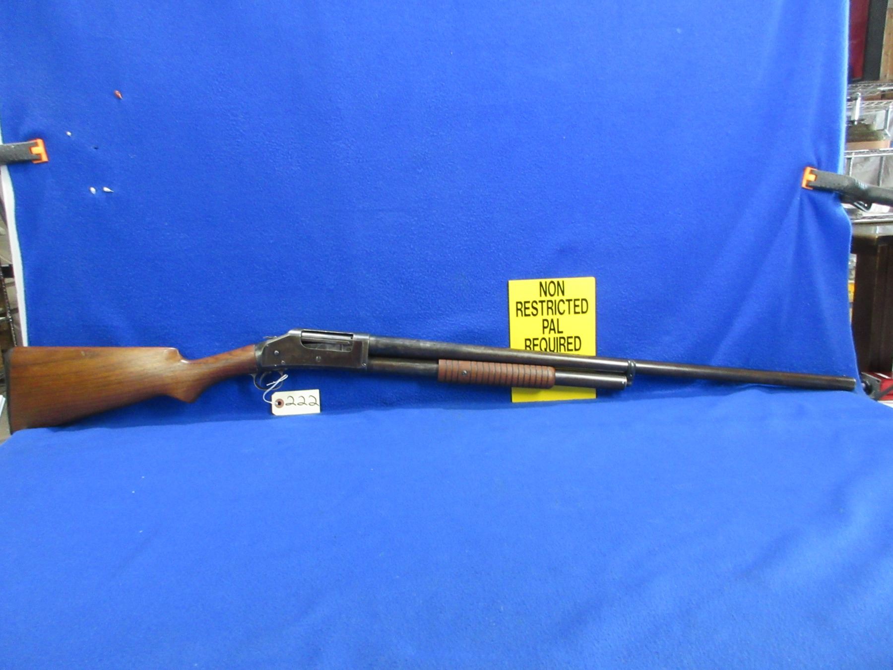 Non-Restricted - Winchester Model 1897 in 12 Ga. 2 3/4" - This pump action shotgun appears to be in good to very good working order. Barrel is 30", bore is good, bluing is turning brown or gone, has bead front sight, stock is good but has small chip at wrist on right side of action, forearm is good but has crack repair at front bottom, butt plate good. Ser # 39455