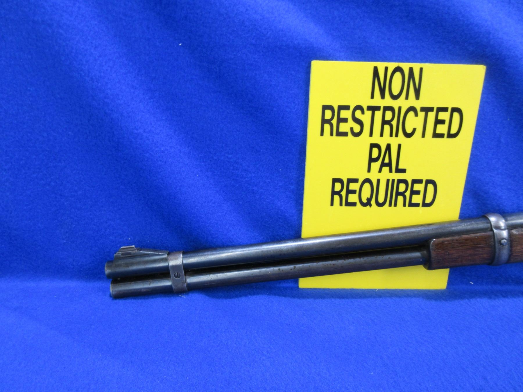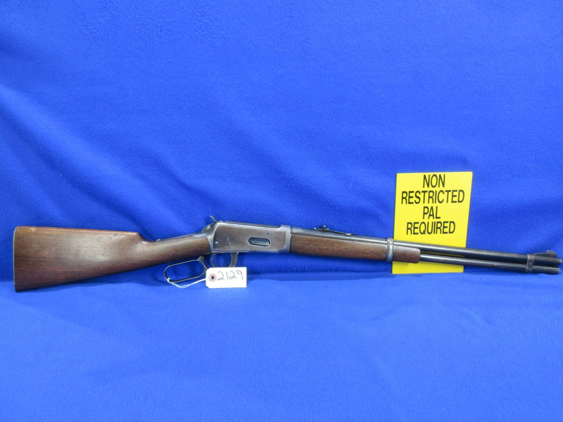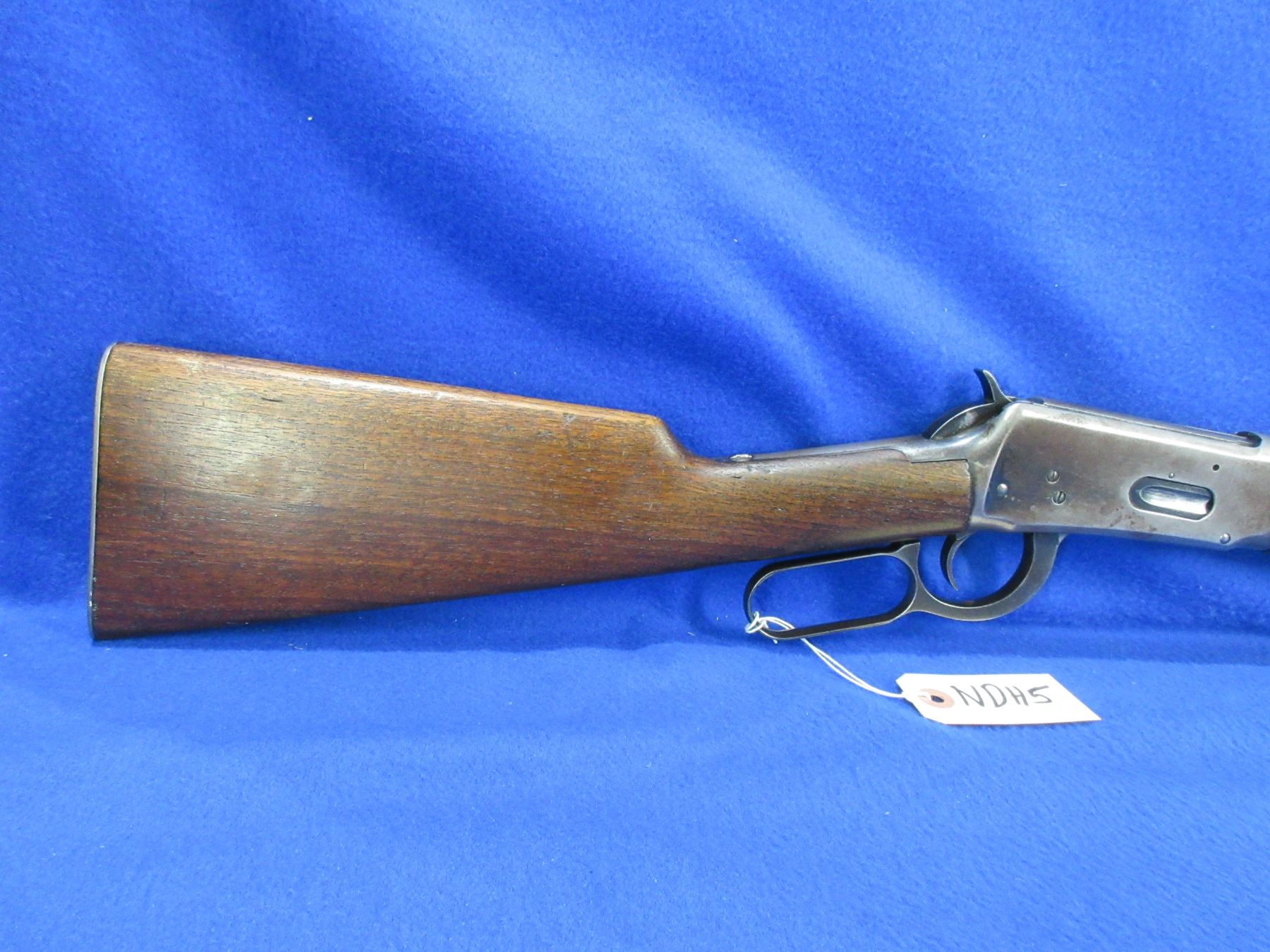 Non-Restricted - Winchester Model 94 in 30 WCF - Made in 1948, this lever action rifle with tube magazine appears to be in good to very good working order. Barrel is 20", rifling is good, bluing is turning grey or gone, has both sights, stock has a hairline crack at the back of the top tang, forearm is good to very good with usage marks, metal butt plate good. Ser #1490235