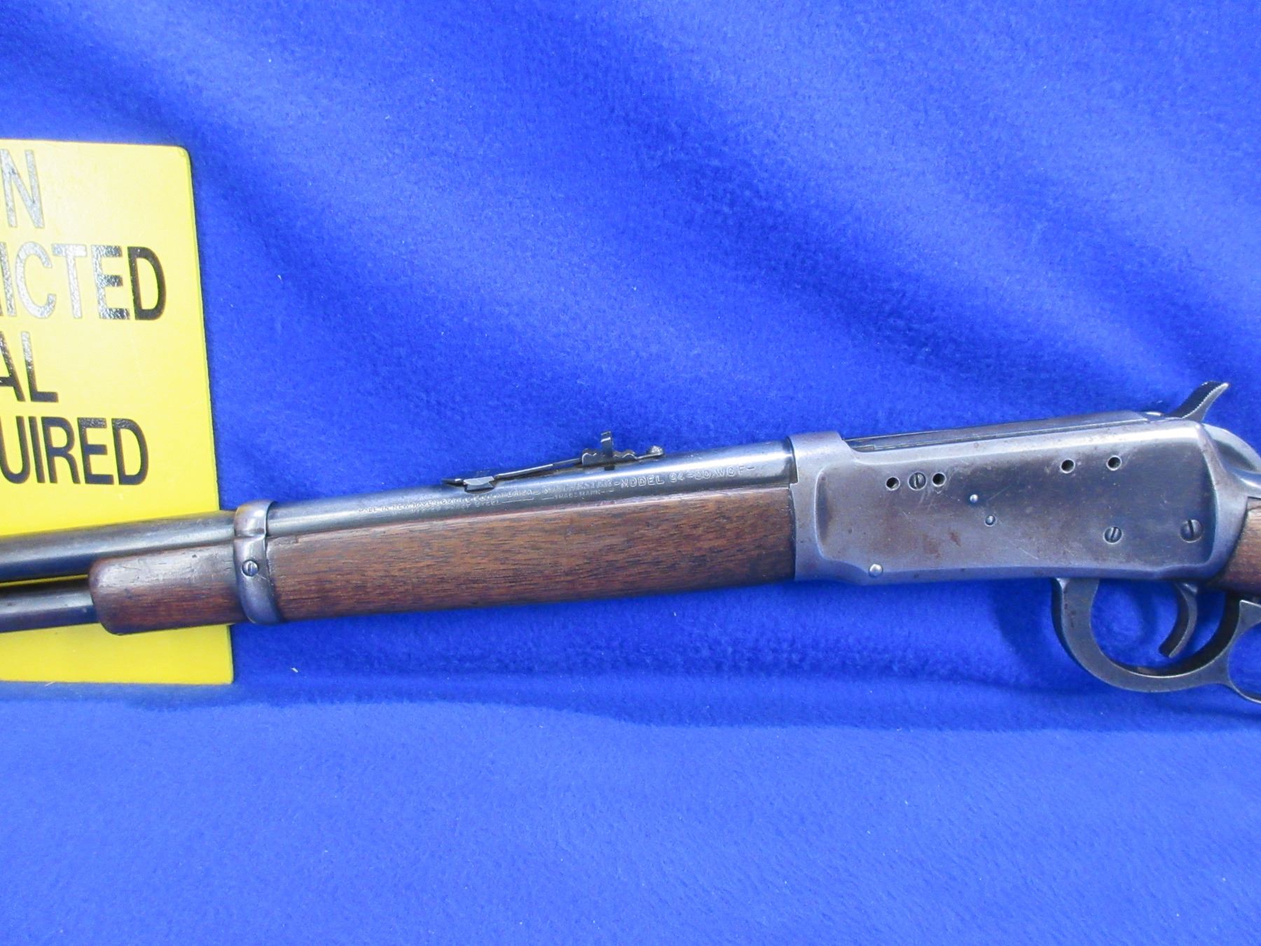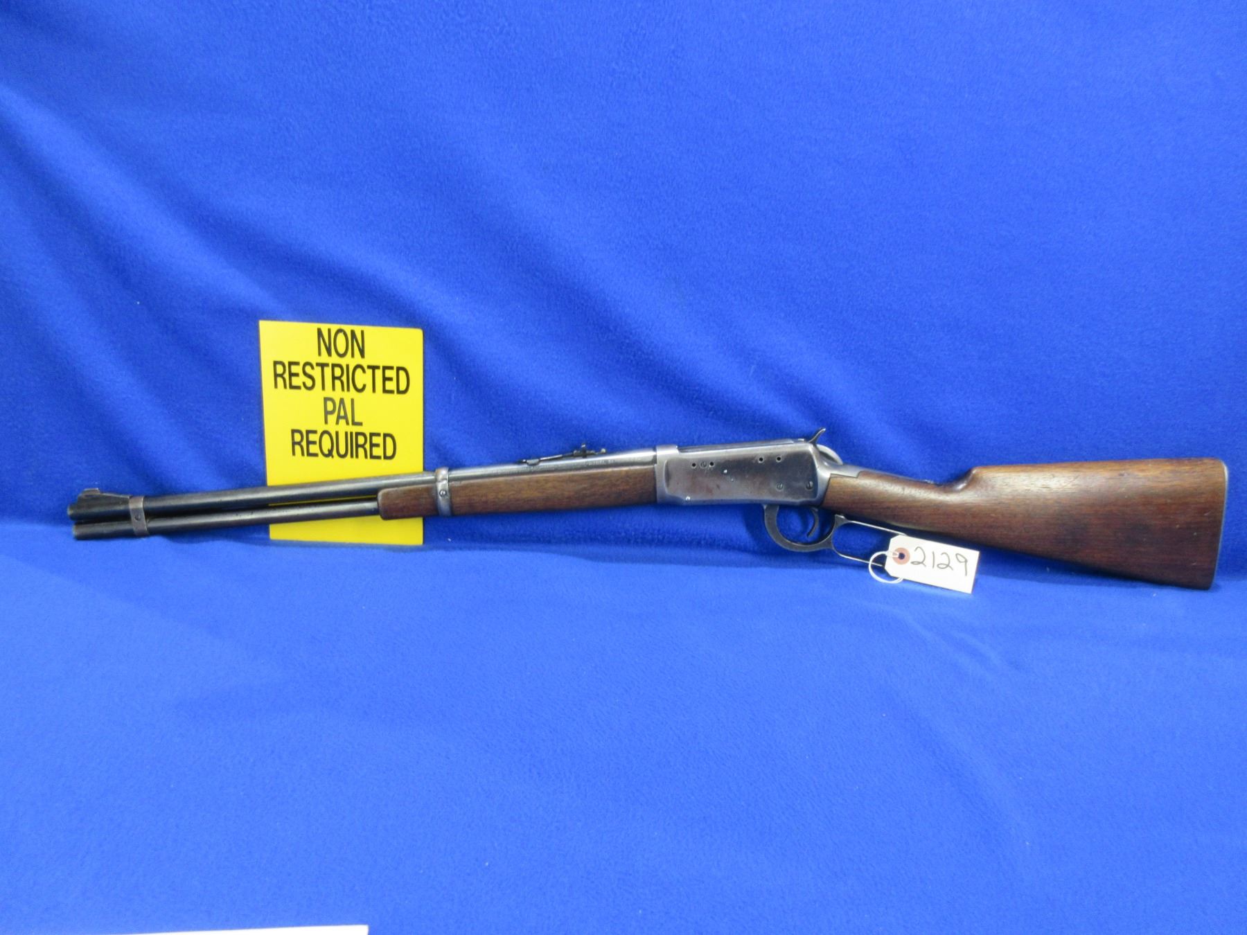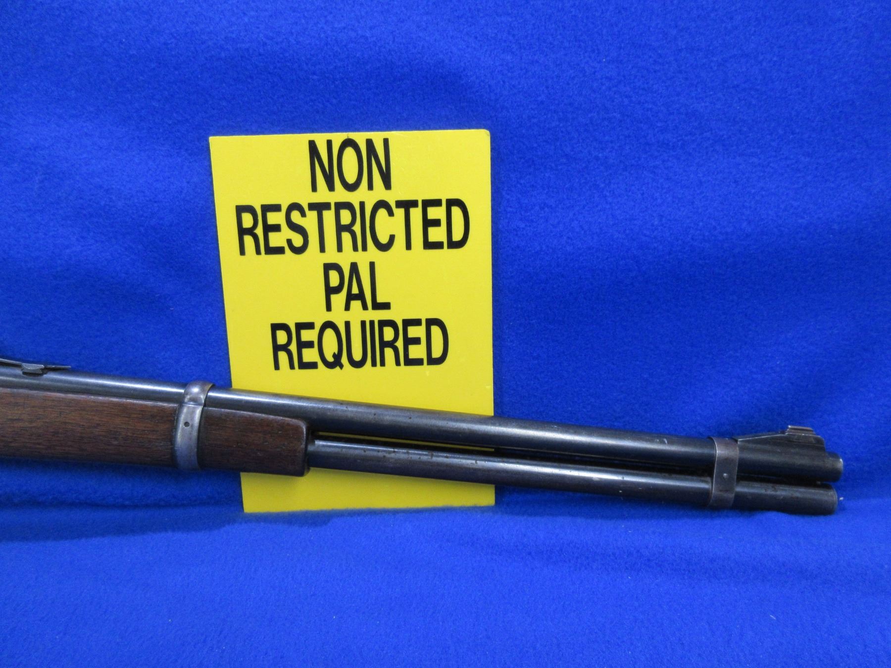 Non-Restricted - Winchester Model 94 in 30 WCF - Made in 1948, this lever action rifle with tube magazine appears to be in good to very good working order. Barrel is 20", rifling is good, bluing is turning grey or gone, has both sights, stock has a hairline crack at the back of the top tang, forearm is good to very good with usage marks, metal butt plate good. Ser #1490235