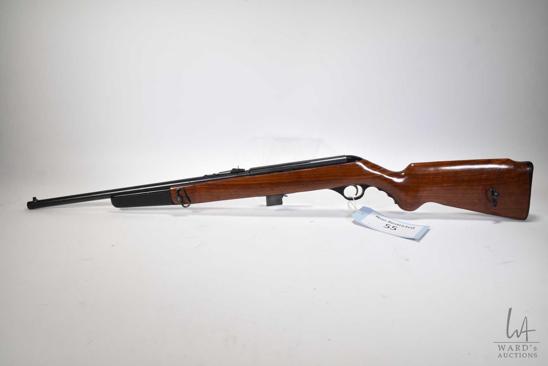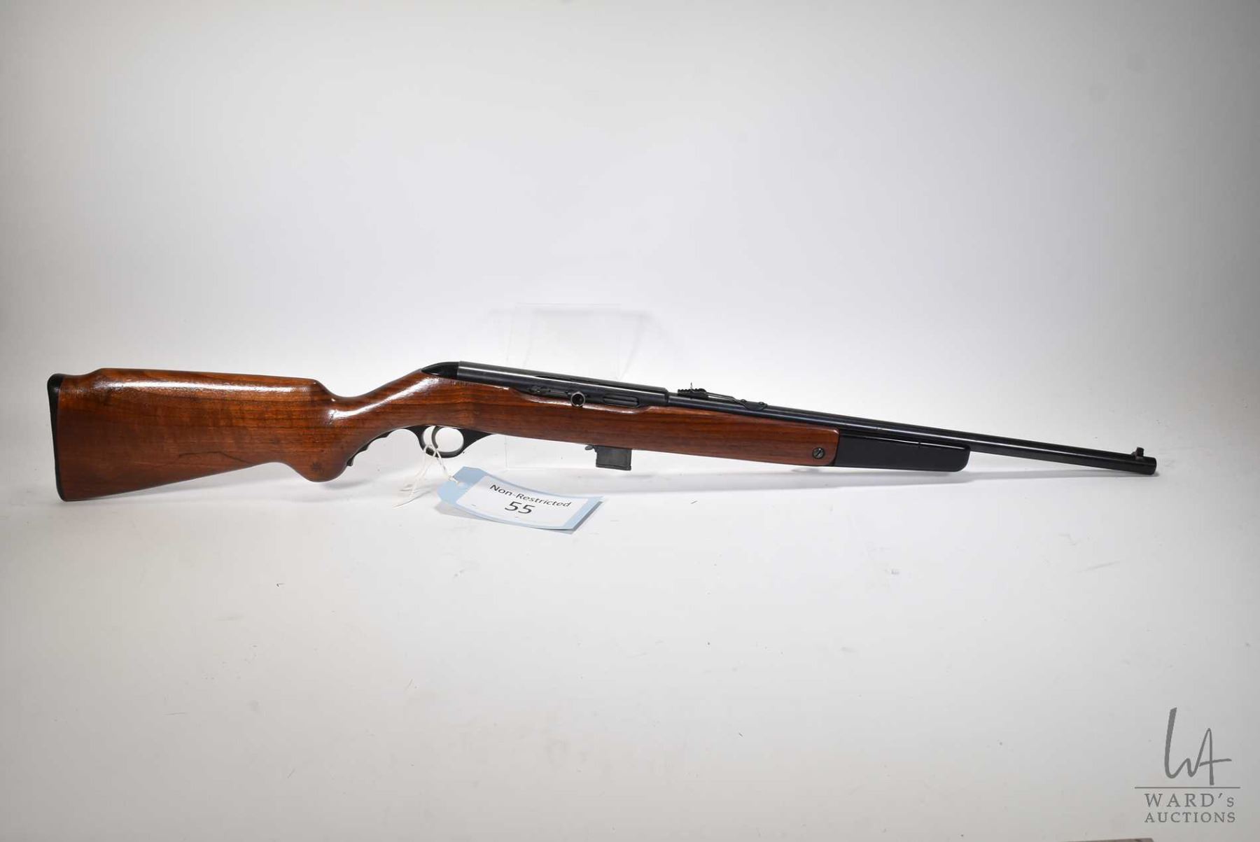 Non-Restricted rifle Mossberg & Sons model 352K, .22 SHV, L, LR semi automatic, w/ bbl length 18" [Blued barrel and receiver with fixed front and elevation adjustable rear sights. Smooth wooden stock with plastic butt plate. Includes sling ring and one detachable magazine. Action and trigger appear to function reasonably smooth with use, handling and storage marks on wood and metal.] serial # NIL, PAL required