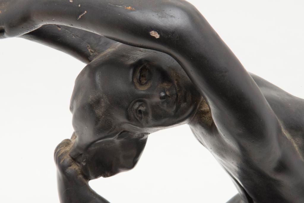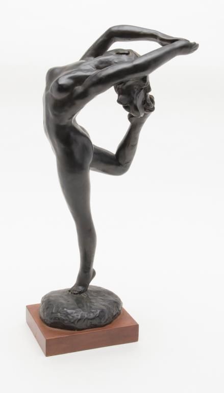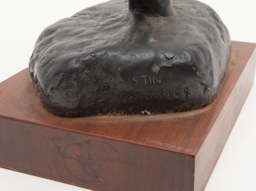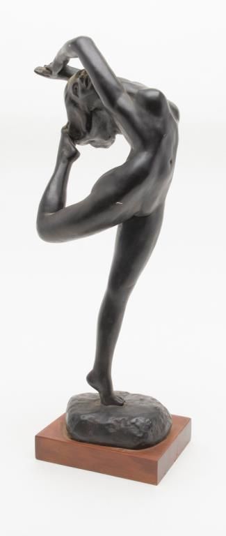 Non-metal art casting of a nude woman on wood base, approx. 23” in height, signed “Ustin”, 1969; nicely accomplished. Est.: $100-$200.