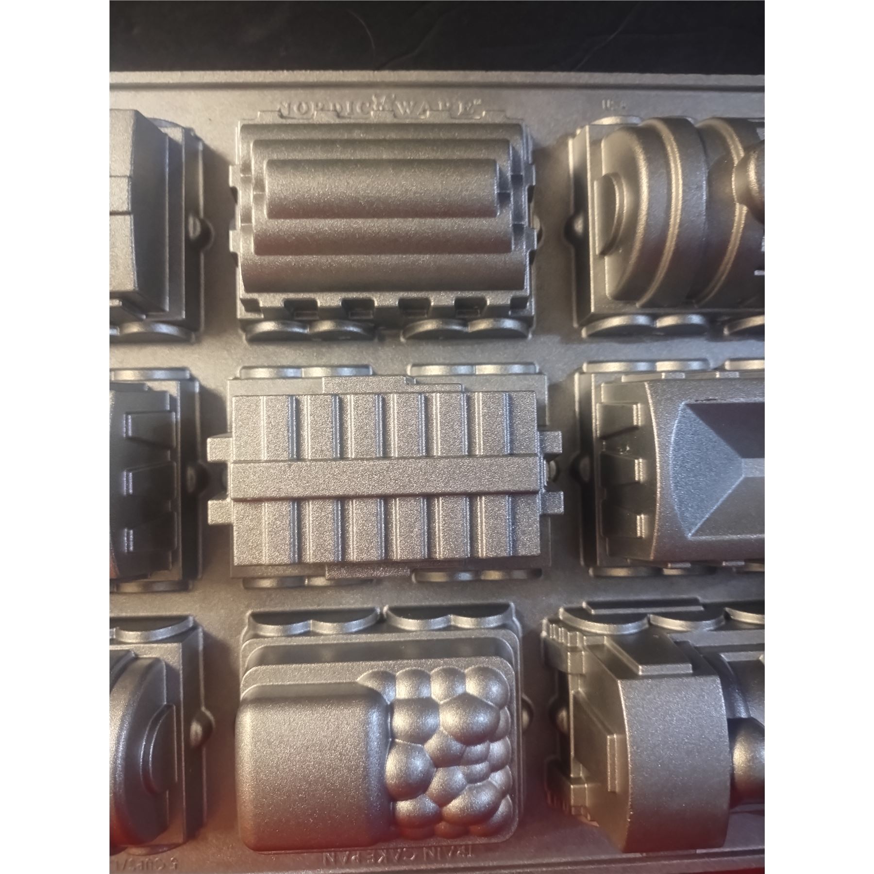 New condition, makes a cool little train with multiple pieces, it uses 5 cups of cake batter to fill.