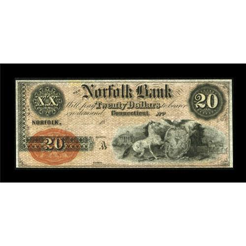 <B>Norfolk, CT- Norfolk Bank</B></I> $20 G14a<BR> A lovely fully red-brown tinted remainder. <B>Uncirculated.</B></I><BR><BR><b>Shipping:</b> Coins & Currency (<a target="_blank" href="http://www.heritageauctions.com/common/shipping.php">view shipping information</a>)