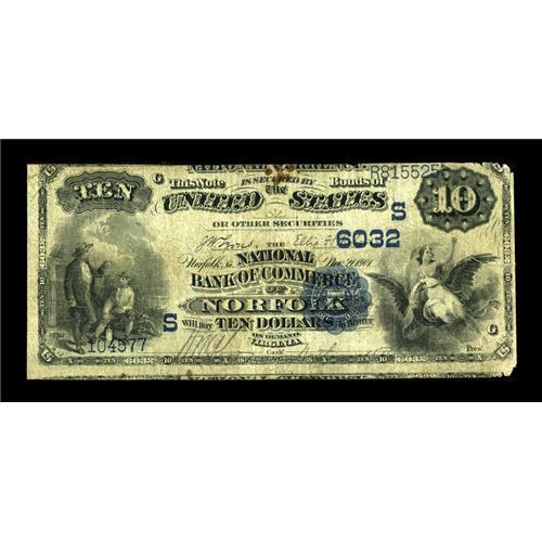 <B>Norfolk, VA</B></I> - $10 1882 Date Back Fr. 545 <B>The NB of Commerce</B></I> Ch. # (S)6032<BR>Signatures are present on this note that has two rounded corners and a few rust spots at or near the top and bottom edges. <B>Very Good-Fine.</B></I><BR><I>From The George P. Hammerly Collection</B></I><BR><BR><b>Shipping:</b> Coin/Currency (<a target="_blank" href="http://www.heritageauctions.com/common/shipping.php">view shipping information</a>)
