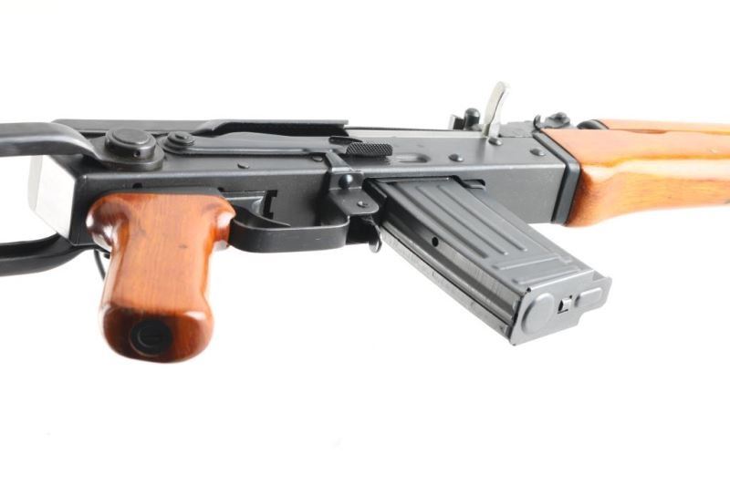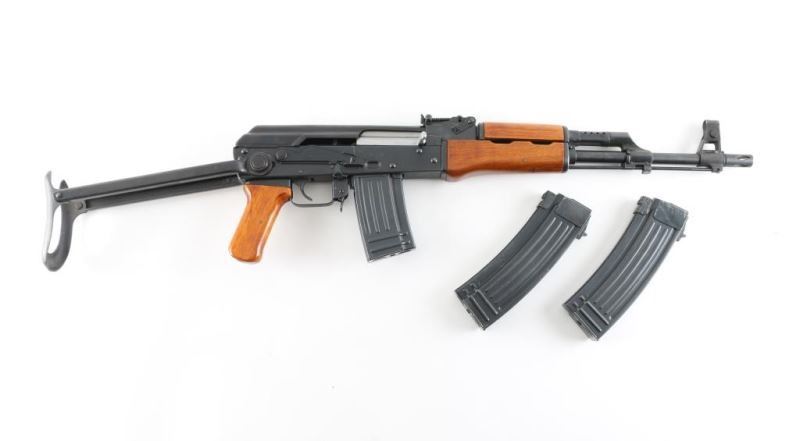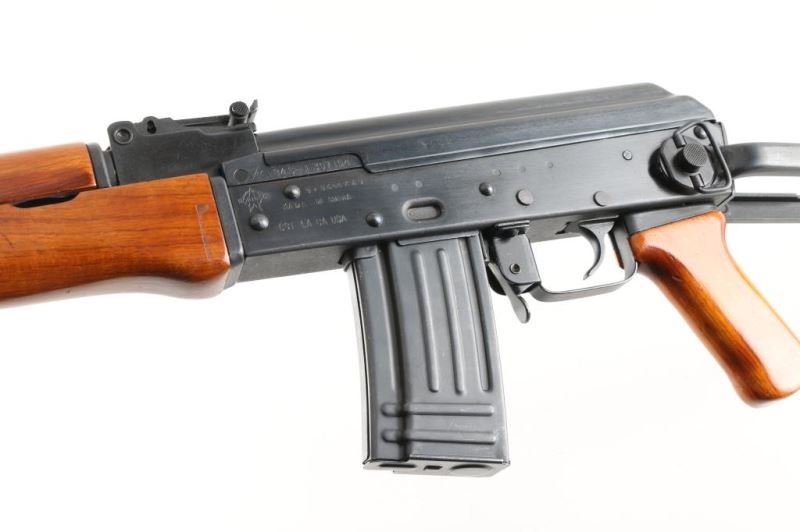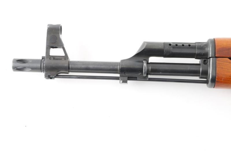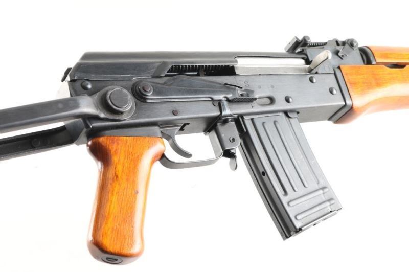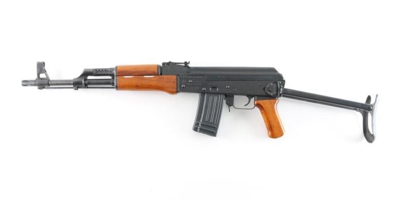 Chinese semiautomatic rifle imported by CSI, LA, CA. Based on AK-47/AKM design. Features blued finish, bright metal bolt & carrier, 16" threaded barrel with 6 flute flash hider installed, cleaning rod, bayonet lug, protected post front sight, tangent rear sight, accepts detachable magazines, manual safety, under-folding stock, smooth wood hand guards and pistol grip, sling loop on gas block, sling swivel on receiver rear. Observed numbers match. Bore is excellent condition, appears hard chrome lined. Retains 98% blue with few signs of use and handling. Wood is very good condition with few minor blemishes. Includes (1) 20 and (2) 30 round blued steel magazines. Condition is NRA Excellent - like new *** Modern Firearm ***