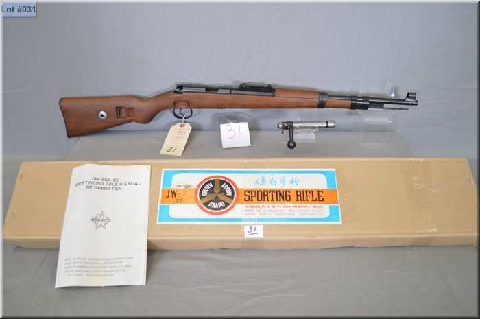Norinco Mod JW 25 A .22 LR cal mag fed bolt action full wood Military style Rifle w/ 20 3/4" bbl [ appears as new, unfired w/ orig box & booklet , blued finish, barreled sights, full wood Military style stock ] Ser # 9504669