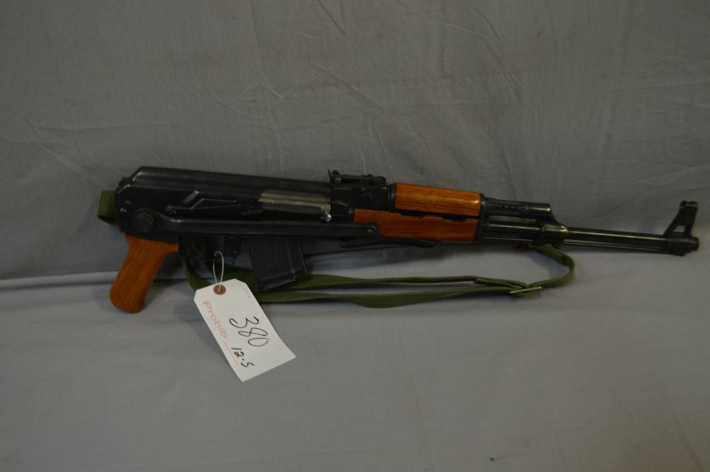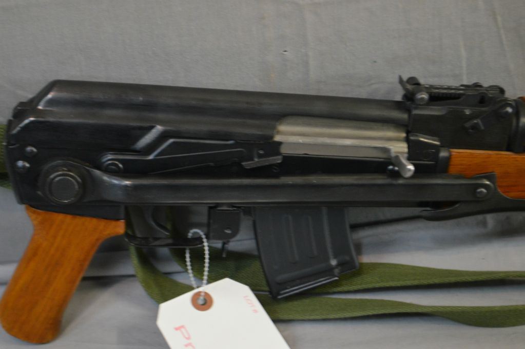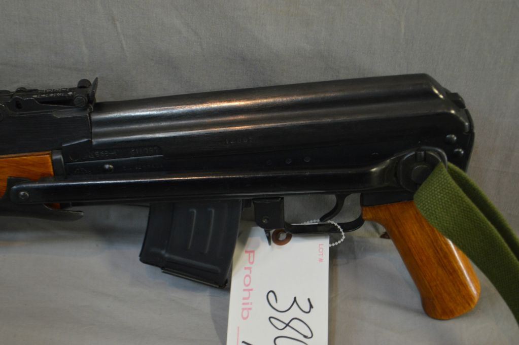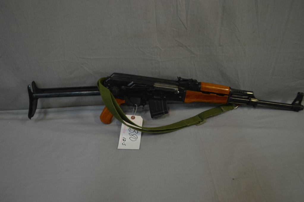 Norinco Model 56 S - 1 7.62 x 39 Russian Cal 5 Shot Mag Fed Semi Auto Rifle w/ 483 mm bbl [ Fired Approx. 25 Rnds, appears excellent, blued finish, wooden pistol grip & forend, folding metal butt stock, w/ cleaning rod, green web sling ] Ser # 614087 Prohib 12 -5 Class Cert # 162330