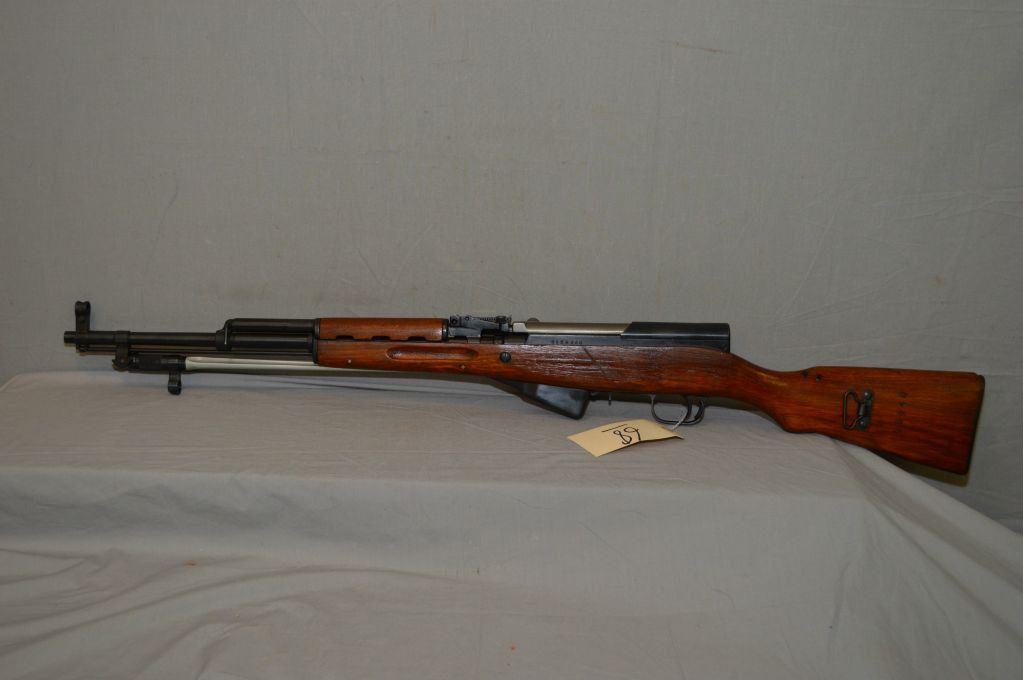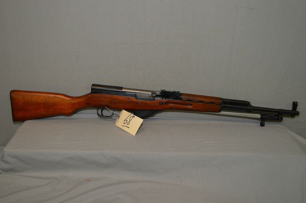 Norinco Model SKS 7.62 x 39 cal Semi Auto Full Wood Military Rifle w/20" bbl [ appears v-good, few marks, blued finish, wood stock , w/ folding attached spike bayonet , cleaning rod, note : small chip by end of the pistol grip ] Ser # 0108246