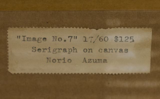 Serigraph in colors on canvas. Signed, titled, and numbered 17/60. Norio Azuma (1928-2004). Approx. 20" H x 24" W without frame, 21" H x 25" W framed. (5154) Scratches to surface and foxing.