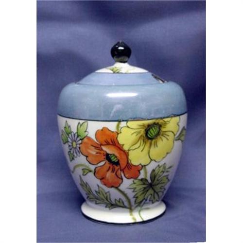 Wonderful Noritake luster or lustre handpainted mustard or jelly jar with anemones.
