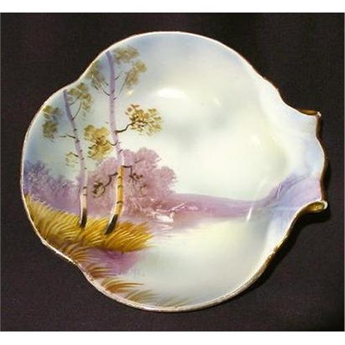 Lovely Noritake candy dish or nappy with fantastic scene of a swan on a lake.