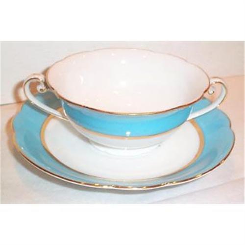 <tr><td>Title:Noritake Blue Striped Cream Soup and Underplate</td></tr>