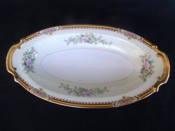 Noritake Celery Dish, Floral , Gold Trim **|**|** Noritake Celery Dish, Floral , Gold Trim Vintage item from the 1950s Material: China