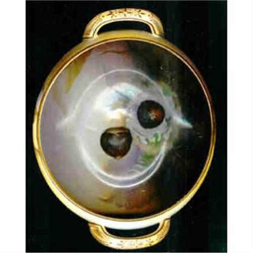 Protruding chestnuts in bottom of bowl. Moriage work on handles. Hand Painted.