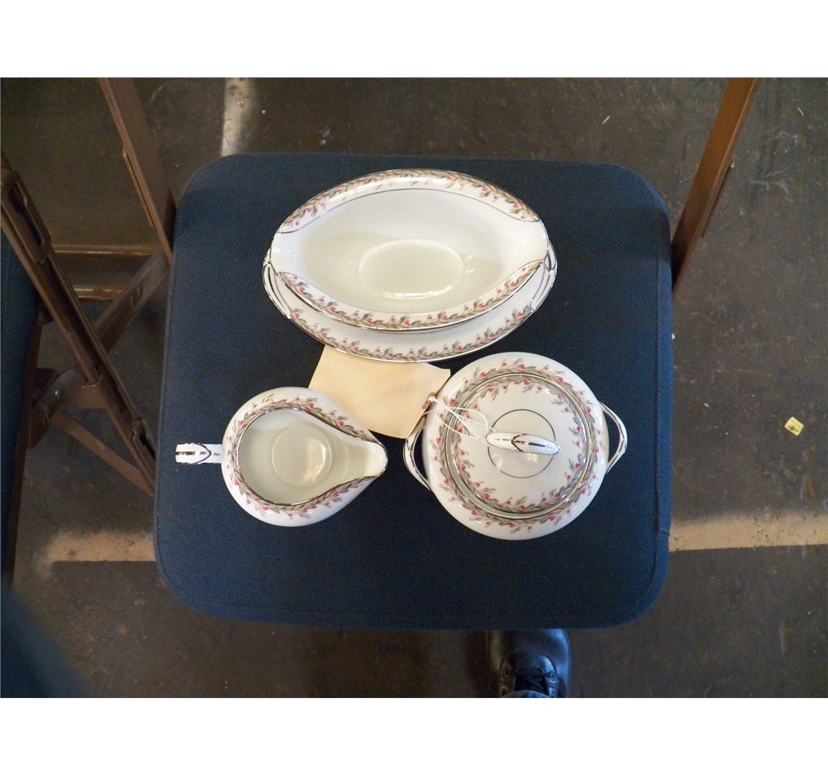 1-creamer, 1-gravy with saucer, 1- sugar bowl w/lid