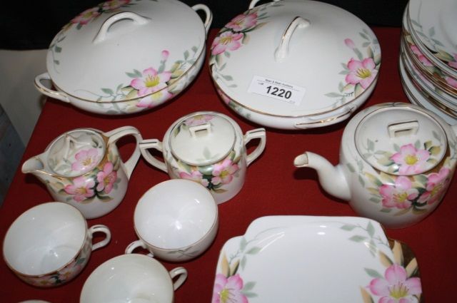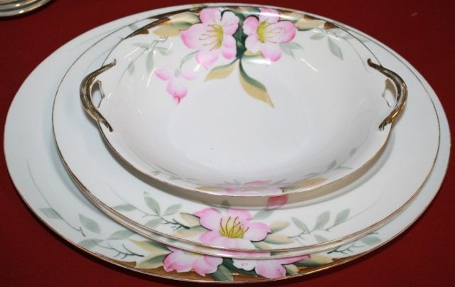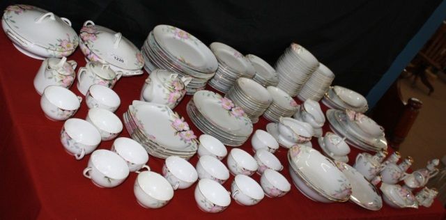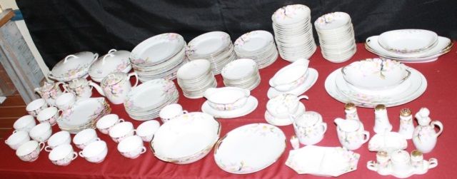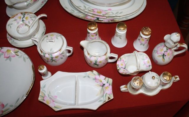 Dinner Plates=11, Luncheon Plates=6,Dessert Plates=12,Cups =16, Teapot with Sugar/Creamer,Saucers =23, Soup Bowls =18, Sauce Bowls=18,Large Platter, 2 Smaller Platters,2 Gravy Boats, 2 Covered Rd Serving