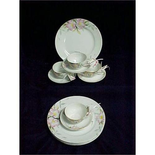 Noritake, Delightful Pink Flowers, Set of 12. Pattern #19322, set encompasses 4 dinner plates, 4 cups and 4 saucers. Lovely set for a luncheon.