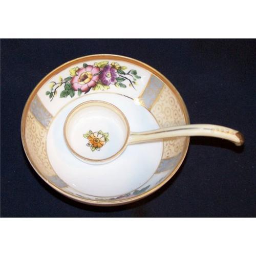 Wonderful Noritake mayo bowl with ladle. Measures 4-1/2" in diameter.