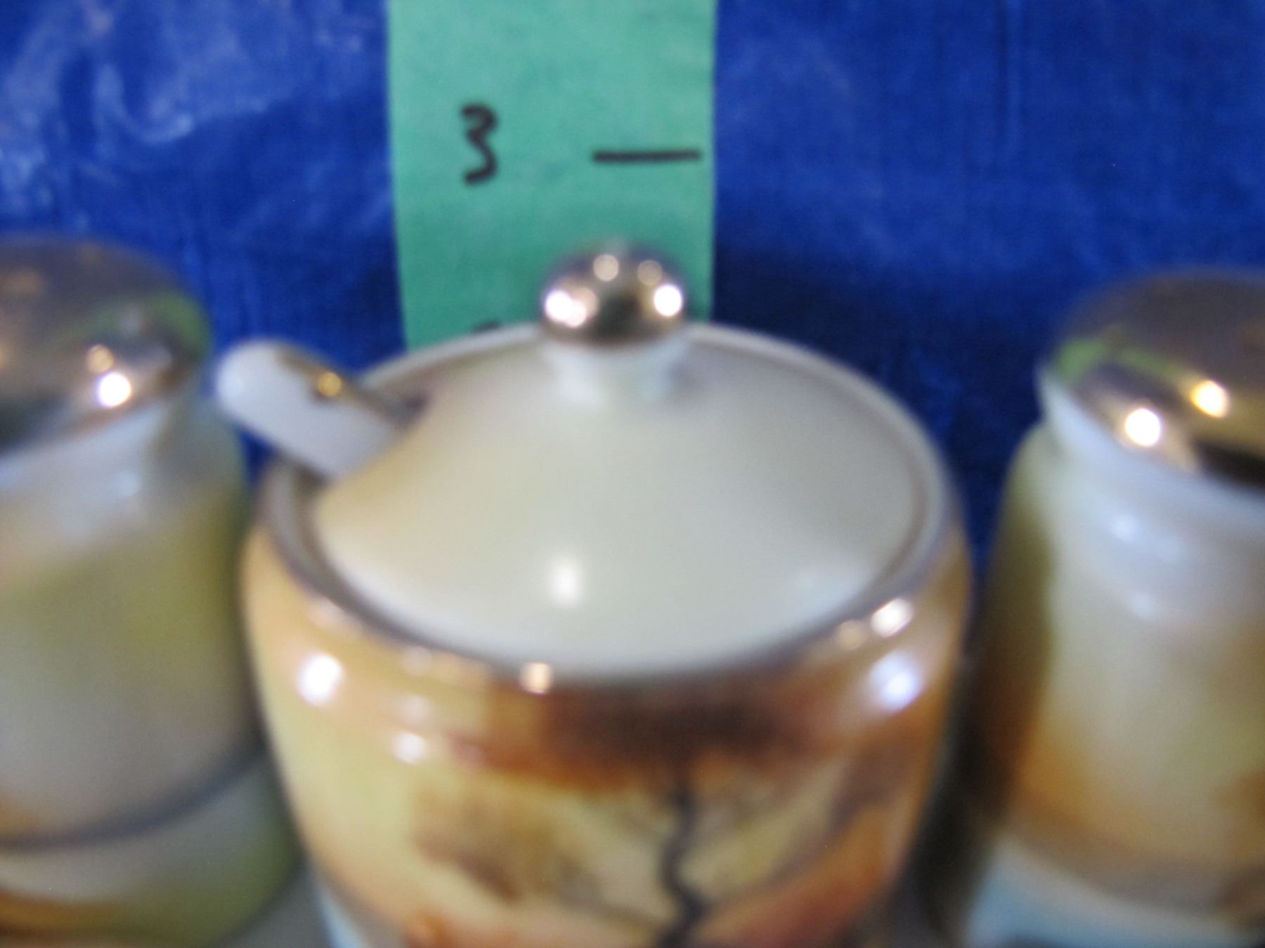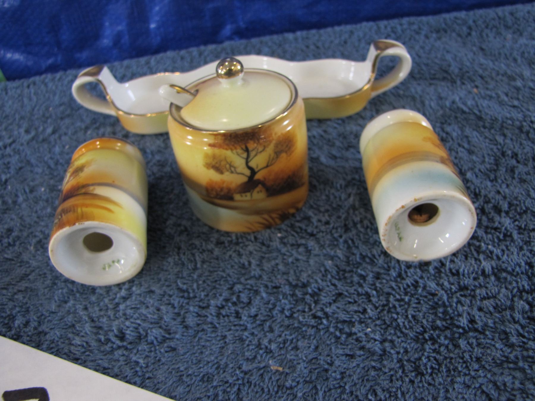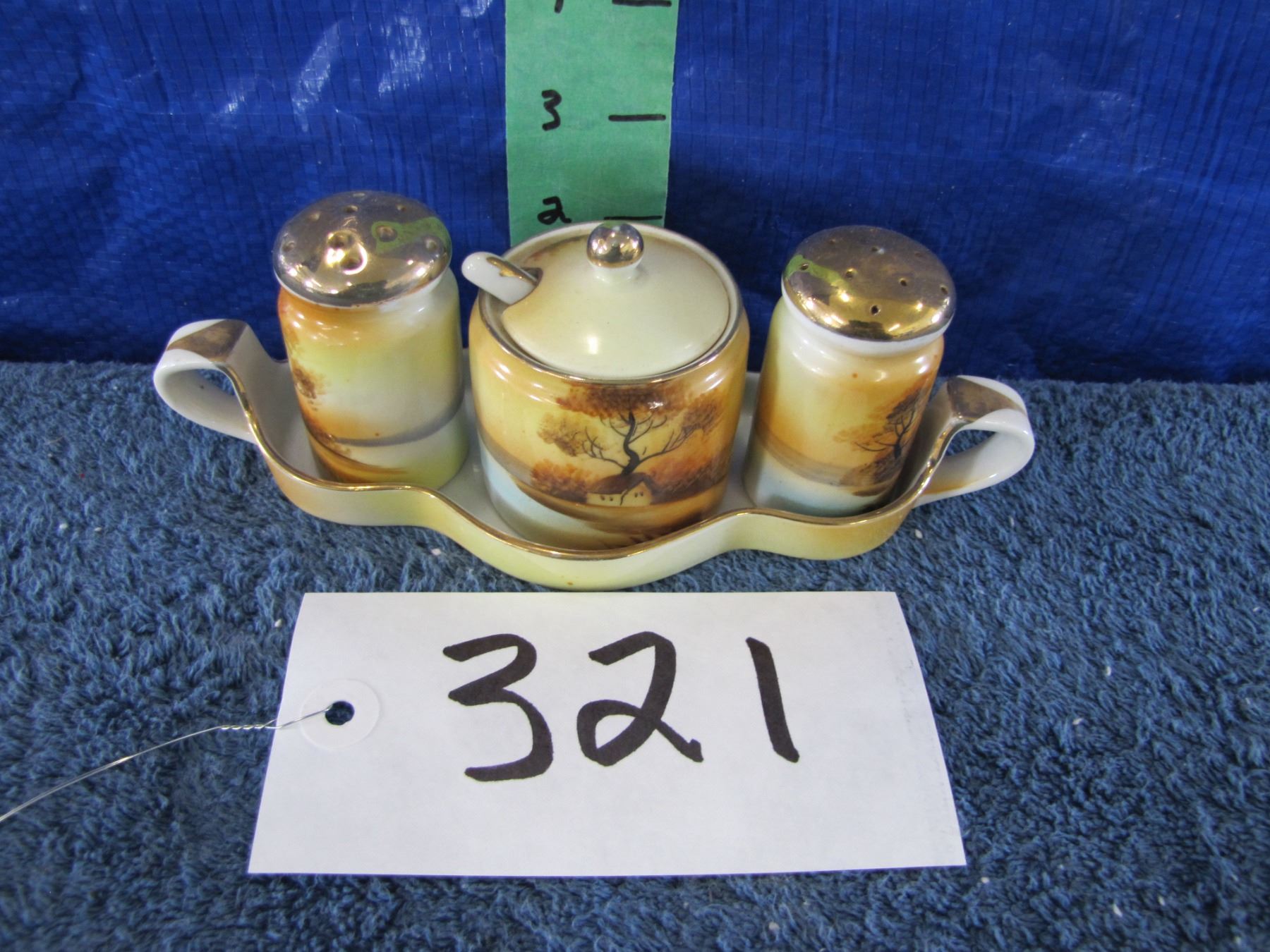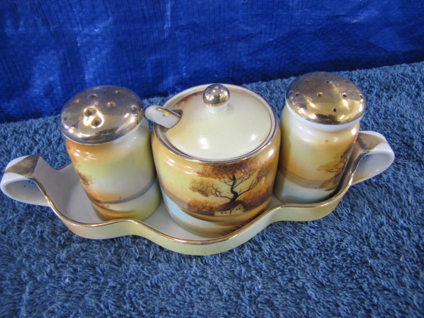 Noritake Salt and pepper and sugar bowl with spoon and Tray