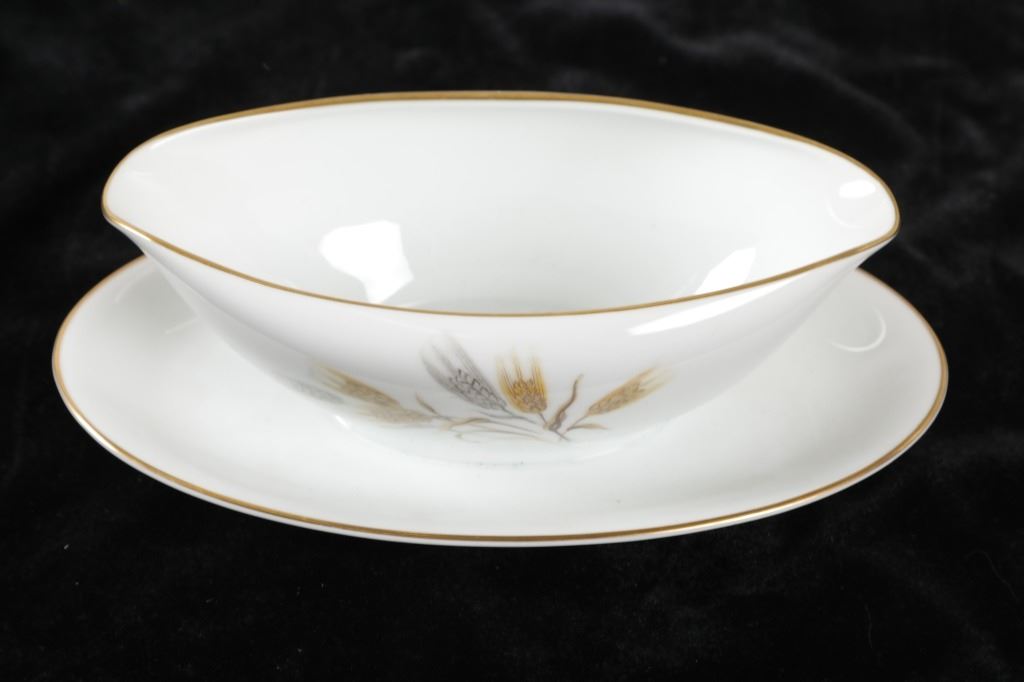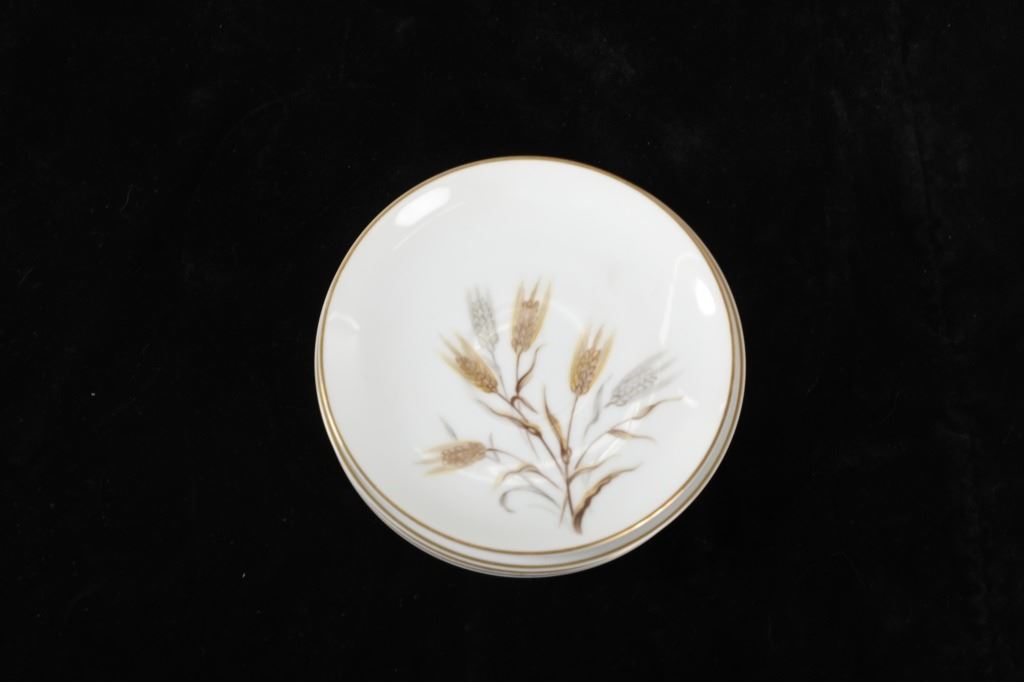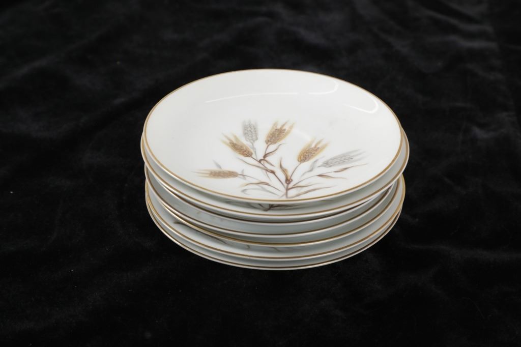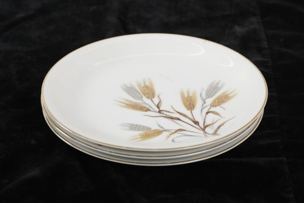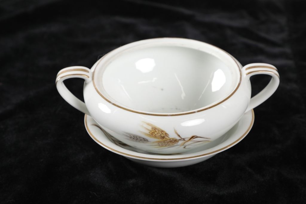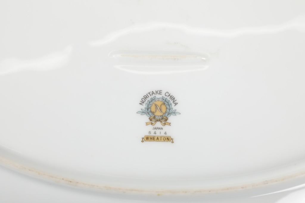 For your consideration is this set of Wheaton Fine China (5414) by Noritake produced between 1953 to 1967. Since 1904, Noritake has added beauty and quality to dining tables all throughout the world. The modern Noritake evolved from a commercial enterprise founded by the Morimura Brothers in New York in 1876. This trading enterprise imported chinaware, curios, paper lanterns, and other gifts. The Noritake Company was founded in 1904 in the village of Noritake, a small neighborhood of Nagoya, Japan. The primary purpose of this first facility was to produce western-style dinnerware for export. It took until 1914 to develop the first porcelain dinnerware plate fit for export. The oldest tableware plates were largely hand-painted, with a liberal use of gold. By the early 1920s, Noritake had invented assembly line techniques that enabled the mass production of high-quality, yet affordable dinnerware. Noritake is currently a recognized leader in tableware manufacture and marketing, with subsidiaries, factories, and affiliates around the world. The pieces show a white base color with accents of gold throughout. The pieces show strands of wheat in gray and golden yellow colors. The bottoms are marked reading, "Noritake China / Japan 5414 Wheaton". The collection includes a gravy bowl, a sugar cube cup, small saucer plates, a creamer pot, two large bowls, a small bowl, a large serving dish, three small plates and four large plates. They measure from 5 5/8" L x 5 5/8" W x 1 1/8" H to 8 1/4" L x 12" W x 1 1/4" H. They have a collective weight of 14 pounds and 8 ounces.*