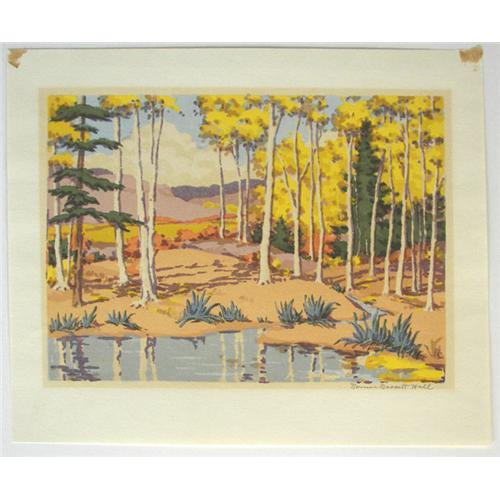 Norma Bassett Hall (1889-1957) Serigraph, Trees & Brook, image size 5 5/8" x 8", pencil signed