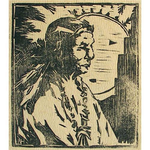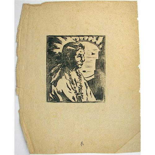 Norma Bassett Hall - Attributed (1889-1957) Woodblock, Indian Portrait, image size 5 5/8" x 5", signed NH in plate