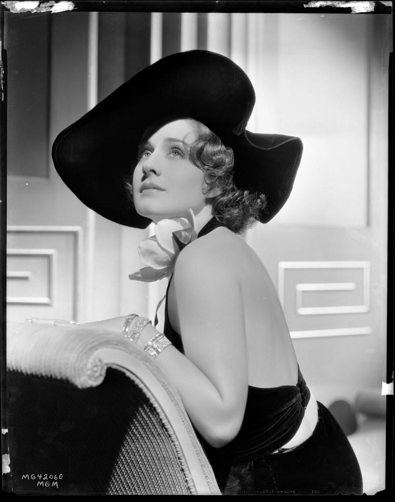 (M-G-M, 1934) Black-and-white 8 x 10 in. camera negative on nitrate film of Norma Shearer from Riptide by George Hurrell; with EASTMAN-NITRATE-KODAK etched on the border, MG-42060 in India ink and extensive retouching. Fine; with missing lower right corner tip, smudges on emulsion at the lower quadrant and mounting paper remnant at the upper border.