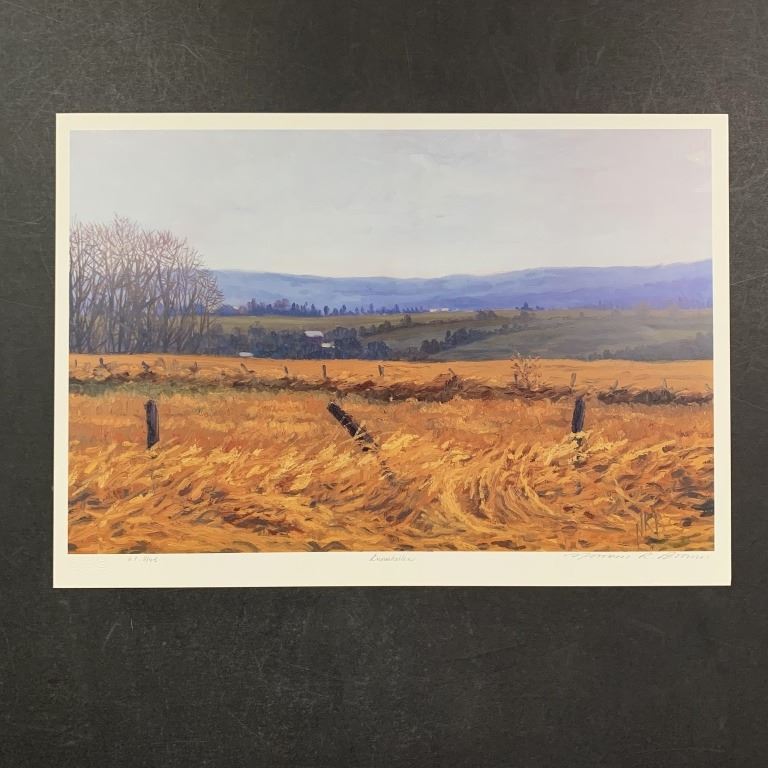 Norman Brown's "Inniskillen" Limited Edition Print. The winds blow on the wheat shafts in this beautiful landscape scenery. Signed on the lower right and numbered AP 2/45 on the lower left. This piece is in excellent condition.
