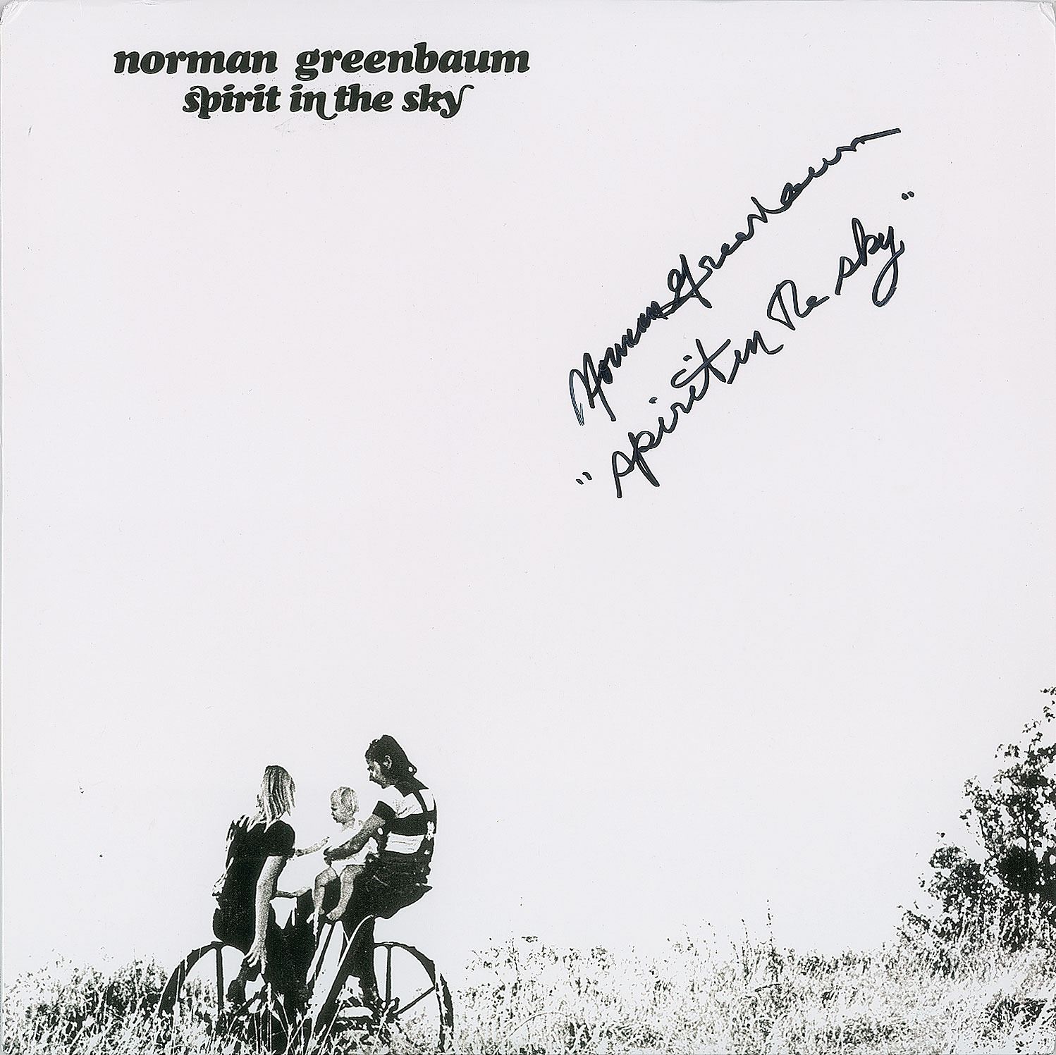 American singer-songwriter (born 1948) who is best known for writing and performing the 1969 song 'Spirit in the Sky.' Limited collector's edition of the Spirit in the Sky album, one of 1500 copies, signed on the front cover in black felt tip, "Norman Greenbaum, 'Spirit in the sky.'" In fine condition. The record is included.