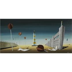 Norman I. Black (b. 1883) Loading Zone c.1940 oil on masonite 16 x 36 Signed [N. Black] lower right. Framed.