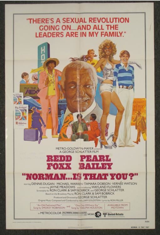 This is an original poster from the 1976 movie Norman Is That You? The movie, based on a Broadway play, stars Redd Foxx dealing with his son's homosexuality, and more provocative issues. The poster features a funny caption about the sexual revolution. Size: 27 x 41 inches (one sheet) Condition: Very good; light wear at the folds, and surface wrinkles
