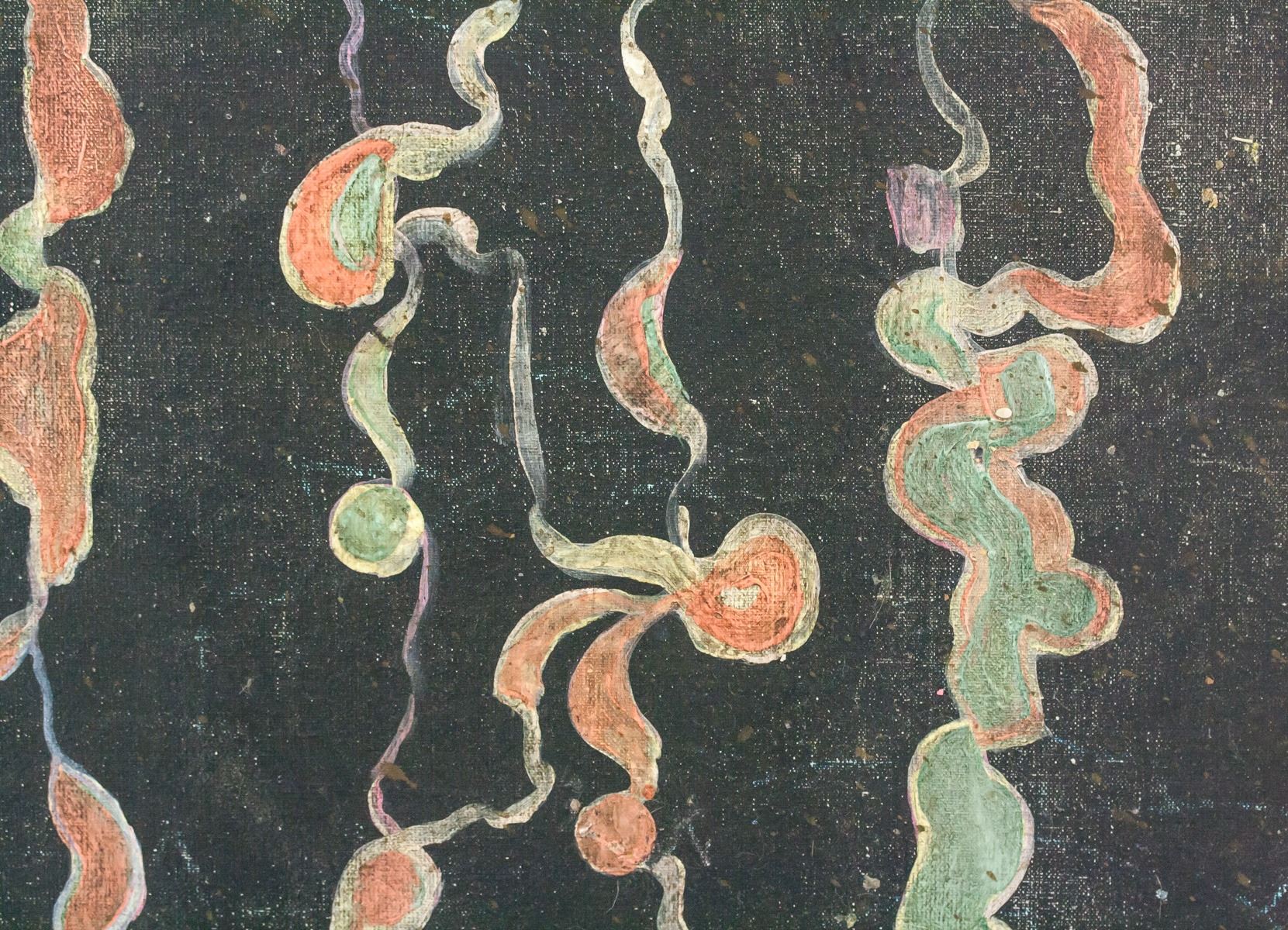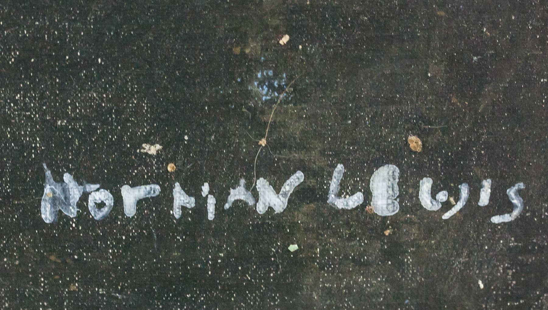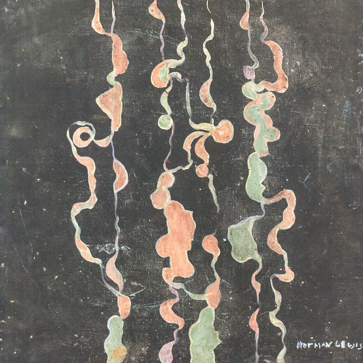 Oil on board. Featuring abstract composition. Signed "NORMAN LEWIS" in the bottom right corner. Label printed in Cyrillic on verso. Attributed to Norman Lewis (1909-1979, American). 50 x 50 cm (19.75 x 19.75 inches).