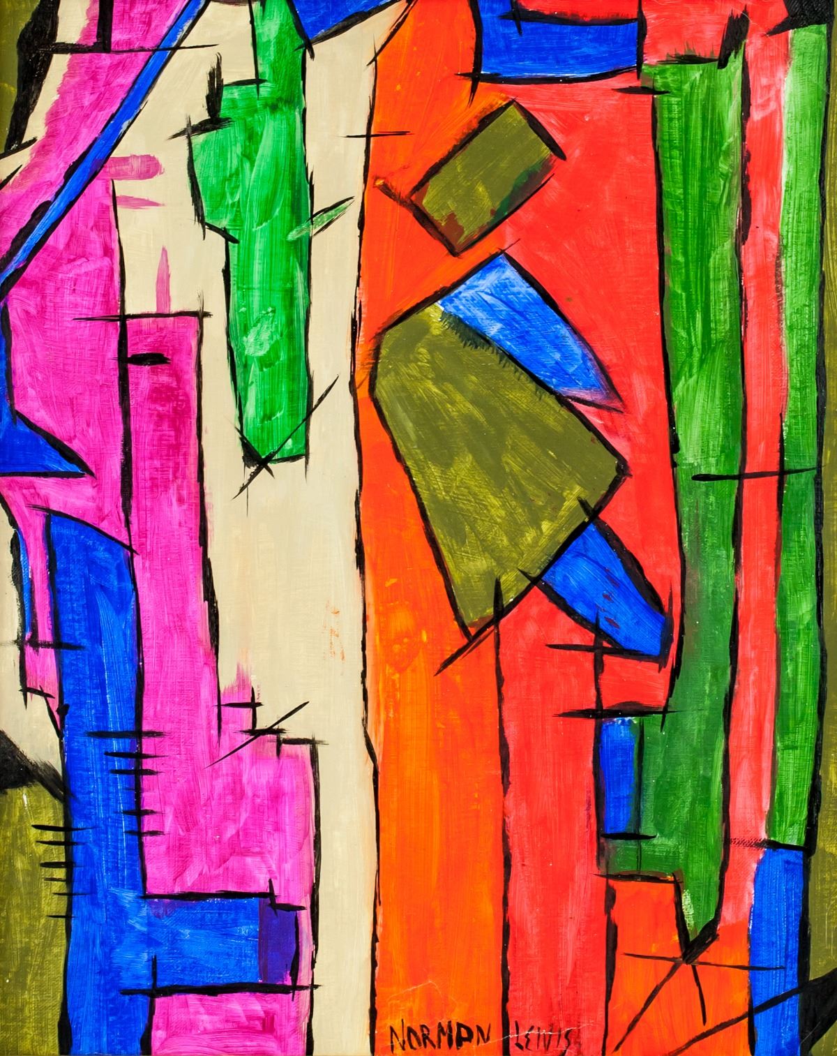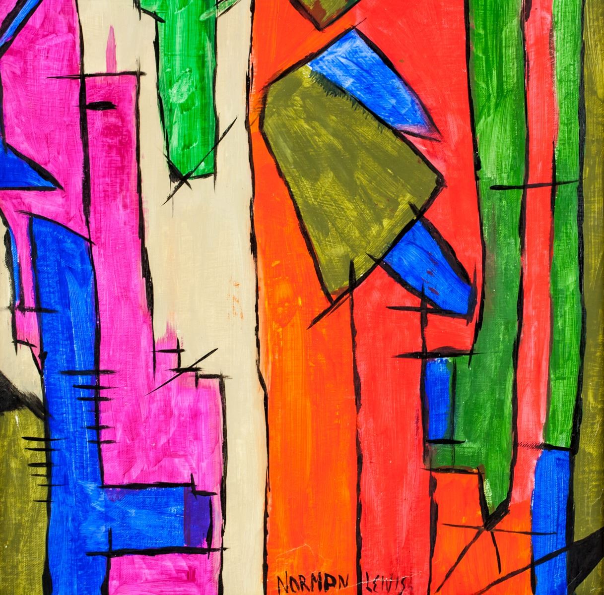 Oil on canvas, stretched and framed. Featuring an abstract expressionist composition. Signed NORMAN LEWIS on the lower edge. Attributed to Norman Lewis (1909-1979, American). 48 x 39 cm (18.9 x 15.4 inches). Framed size: 53.5 49.5 cm (21.1 x 19.5 inches). PROVENANCE: Southern Ontario estate