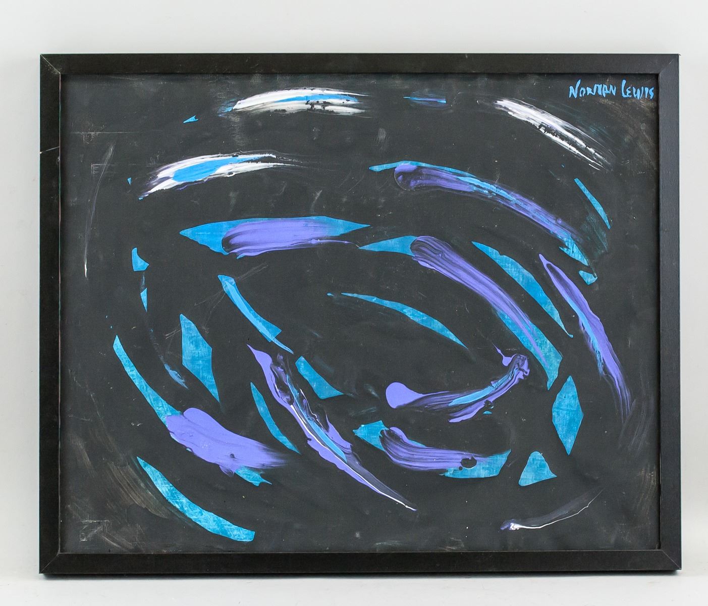 Oil on canvas, framed. Featuring an abstract expressionist composition. Signed NORMAN LEWIS on the upper right corner. Attributed to Norman Lewis (1909-1979, American). 39.5 x 49.5 cm (15.5 x 19.5 inches). Framed size: 43 x 53 cm (17 x 21 inches. PROVENANCE: Southern Ontario estate
